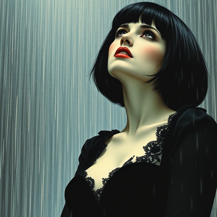 Classic slow 1980's goth synth pop, 1980's Deep dark raspy gothic brutal Female vocals in the key of D minor