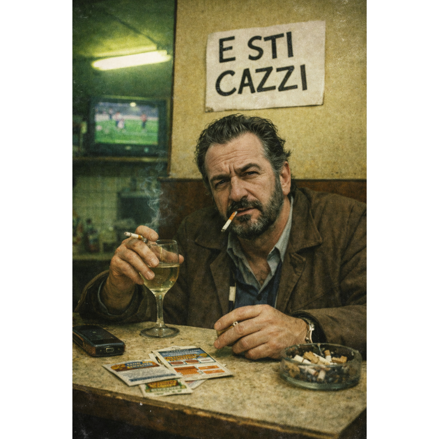 Italian comedic folk-punk song with strong Roman character, Tone: sarcastic comedy, vulgar but affectionate, like a drunken Roman rant that turns into a sing-along, Male lead vocal, very expressive, raspy and theatrical, heavy Roman attitude, Spoken-word drunk bridge, half-shouted, half-laughed, Mid-tempo groove, minor key but playful, Acoustic guitar driving the song, dirty electric guitar fills, bouncy bass, simple street-style drums, Occasional accordion or organ for ironic flavor, Chorus big and catchy, shouted by a group like in a tavern at night, Mood: ironic, decadent, chaotic, Roman nightlife comedy, love-hate letter to the city, Feels like satirical street music, not polished, intentionally rough and human