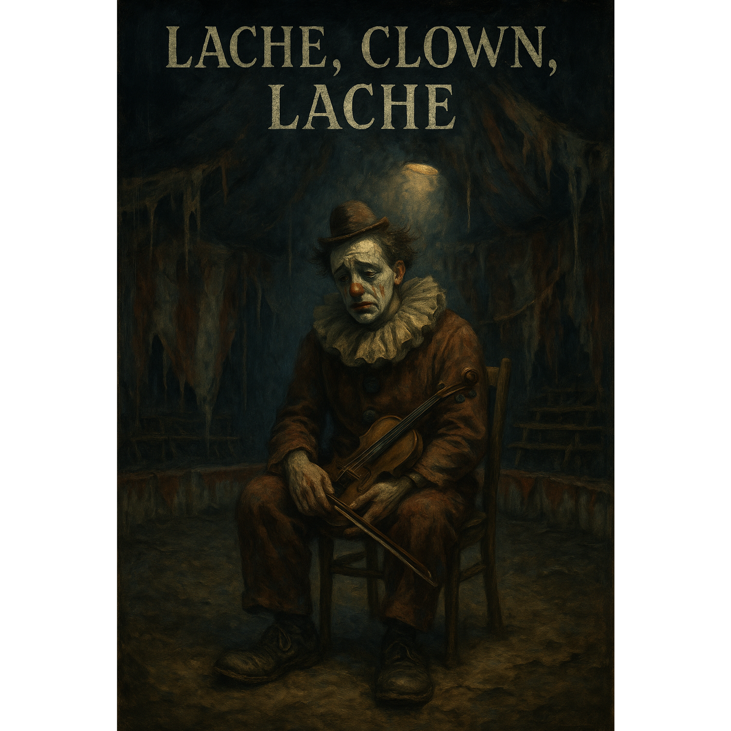 A sad, emotional circus ballad with folk and gypsy influences, Slow tempo in 3/4, like a melancholic waltz, Main instruments: violin solo (emotional, weeping), accordion (dark, circus-like), acoustic guitar fingerpicking, double bass pizzicato, Add subtle orchestral strings for dramatic tension, Drums very light (brushes, soft kick, occasional cymbal swells), Atmosphere should feel like a broken circus tent at night, full of sorrow but also fragile beauty
