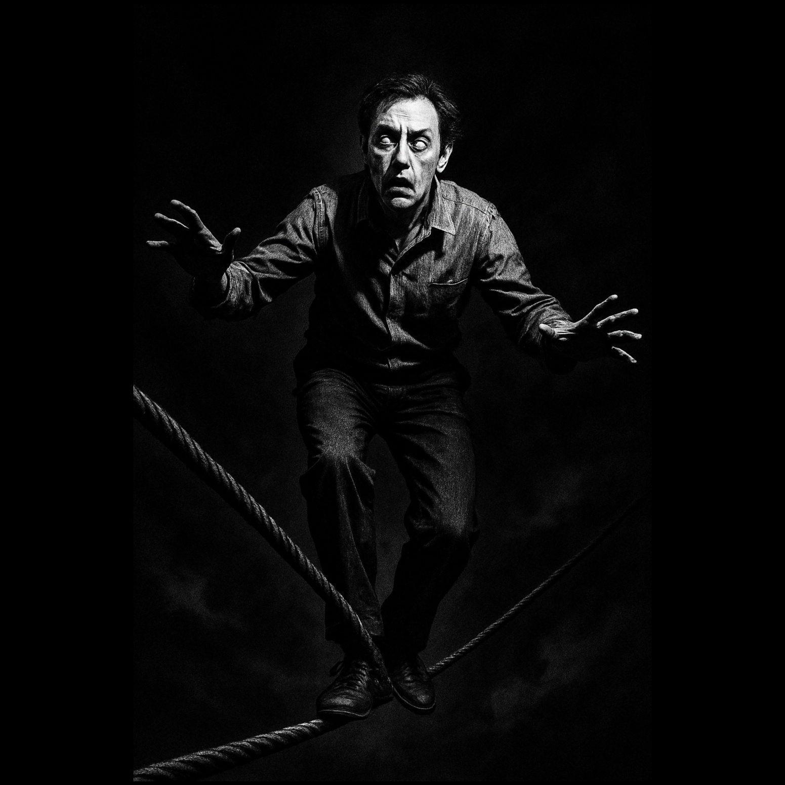 studio quality, tempo shifts (verses ~100 BPM eerie ska groove, chorus ~170 BPM intense rock), 90s alt-pop-rock with ska elements, crunchy guitars, bouncy bass, punchy drums, swirling synths, edgy vulnerable female vocals, anxious existential rebellious vibe with emotional dynamic swings