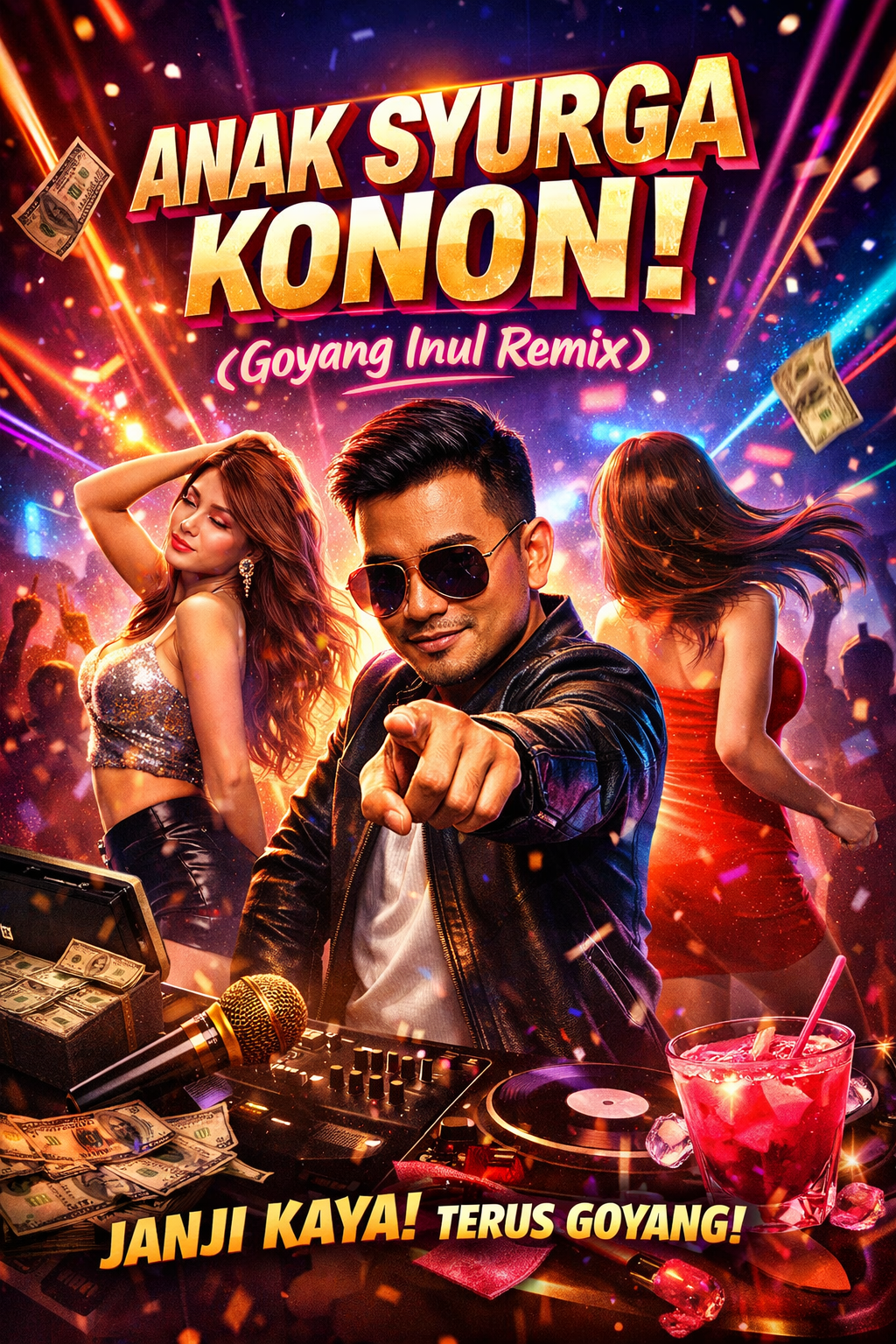 High-energy EDM Dangdut x Tech House remix, 128 BPM, Bouncy four-on-the-floor kick, punchy club bass, digital kendang groove, playful synth stabs, Humorous, sarcastic, confident vibe, Dancefloor-ready, TikTok-friendly, Male Malaysian vocal, clear, teasing, not aggressive, No humming, no choir, Song structure: