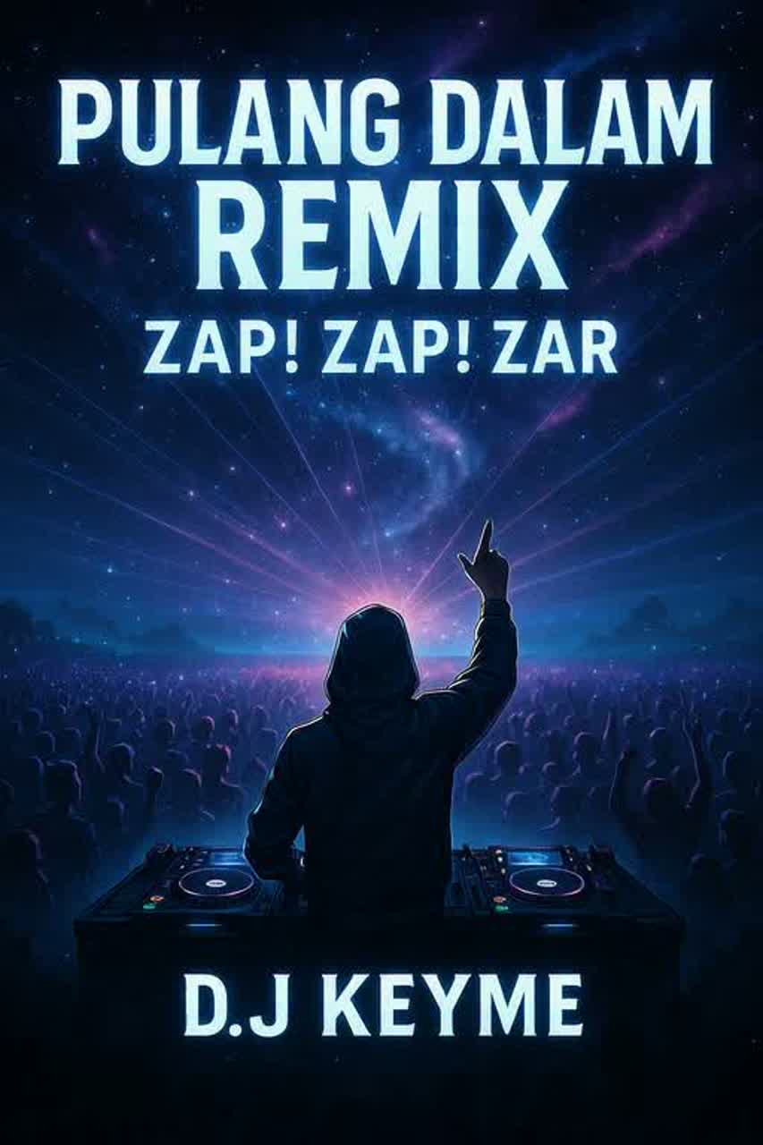 Disco dance EDM x dangdut makrifat fusion, hypnotic pulsing bass, jumpy 4-on-the-floor beat, energetic male vocal, catchy viral hook "PULANG DALAM REMIX! ZAP! ZAP! ZAR!", futuristic synth leads, dangdut-inspired percussion but EDM polished, spiritual rave aesthetic, theme about returning to God through rhythm, euphoric drop after silence, club anthem, festival-ready, addictive chorus, trance-like energy, mystical but fun, perfect TikTok moment, Child girl voice FX, Malaysian accent, whispering, playful but mysterious, slightly echoing like inside a dream, cosmic shimmer tone, cute but hypnotic, clean vocal, around 7-year-old Malaysian child tone, slight reverb, ethereal and magical atmosphere, no background music, deliver the line exactly: "You’re now inside the frequency of D, J KeyMe — jangan lawan rentak ini, "