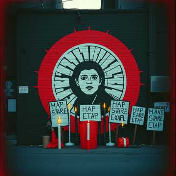 High-energy pop-punk track with fast tempo (around 175 BPM), Driving distorted guitars with tight palm-mutes, punchy snare, and bouncy bassline, Bright but gritty tone, Vocals are raw, sarcastic, slightly nasal male lead with shouted backing harmonies, Mood is rebellious, political, and anthemic — think small-venue chaos meets youth protest, The song “Holiday and a Boulevard” tells how those who challenge the system get killed, then honored with a fake legacy — a holiday and a street sign, Starts with upbeat guitar riff, explodes into fast verses, gang-chant choruses, and a bridge that drops to half-time before final outro chant