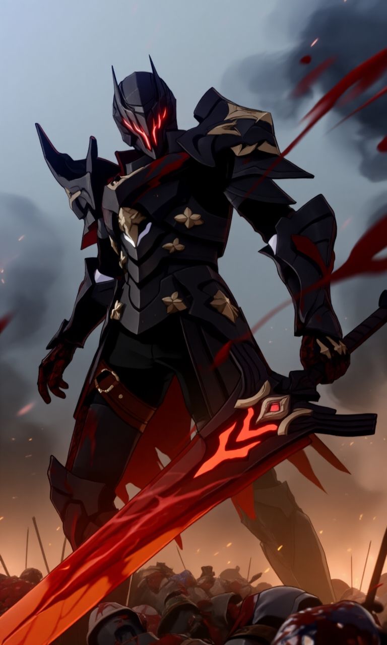 rock, Epic heavy metal stormscape with male vocals; downtuned rhythm guitars in a slow, monolithic groove, tom-heavy drums and growling bass under the verses, Chorus modulates up in key and tempo with a double-kick barrage, harmonized twin-guitar leads, and tremolo sustains clashing like hatred and justice, Final section rides a searing, sky-splitting guitar solo that stretches into thunder while gang shouts punch through, vocal, slow, harmonized, electric, metal