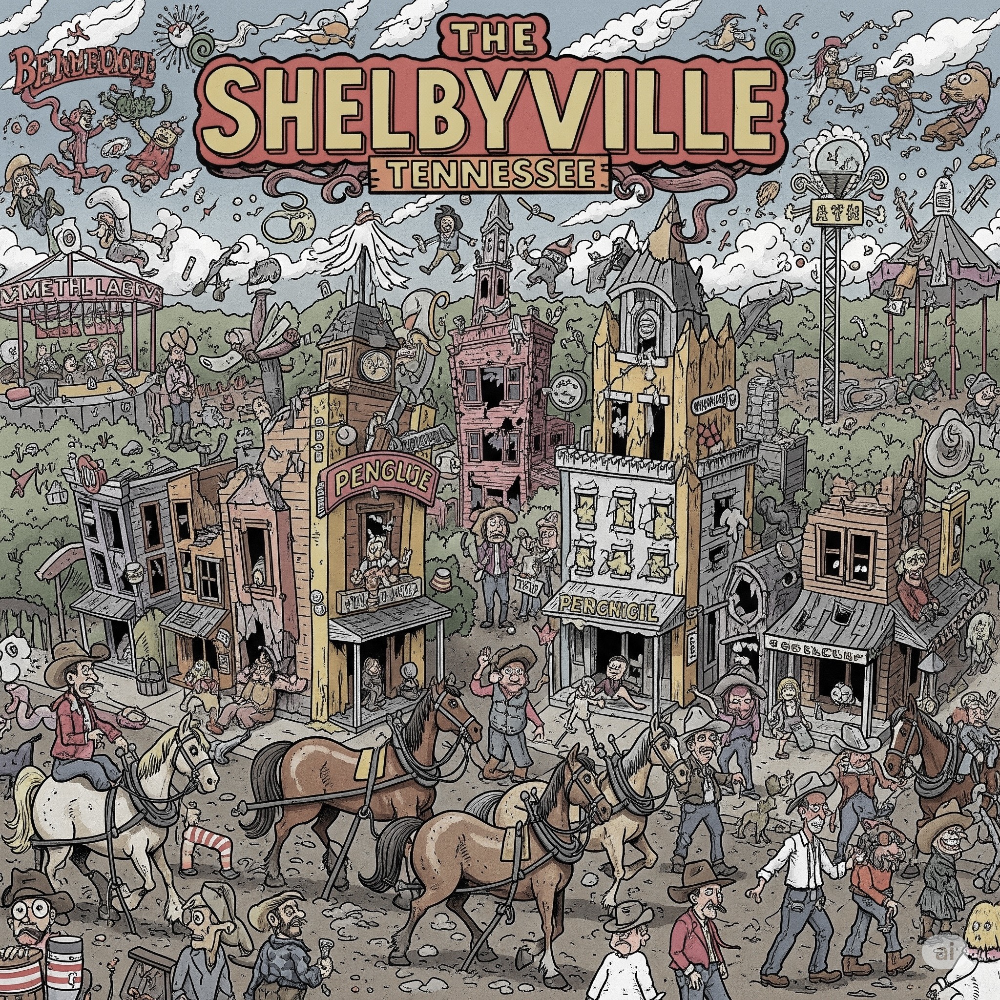 thumping upright bass, yeehaws, fiddle leads, yelps, claps, dance, country, barn-burner, banjo flicks, call-and-response breakdown, square dance energy, washboard rhythm, hoedown-fast, ironic reverence
