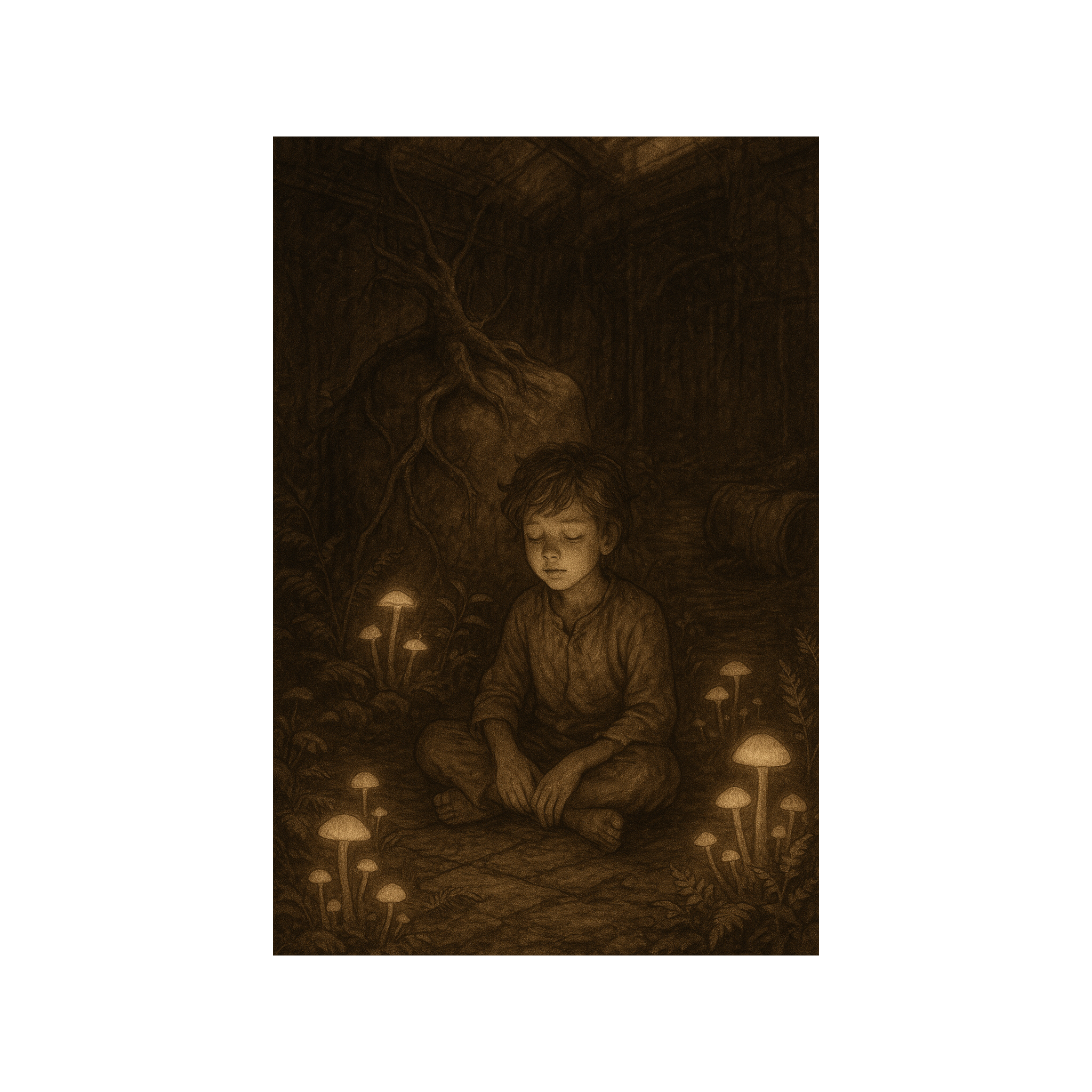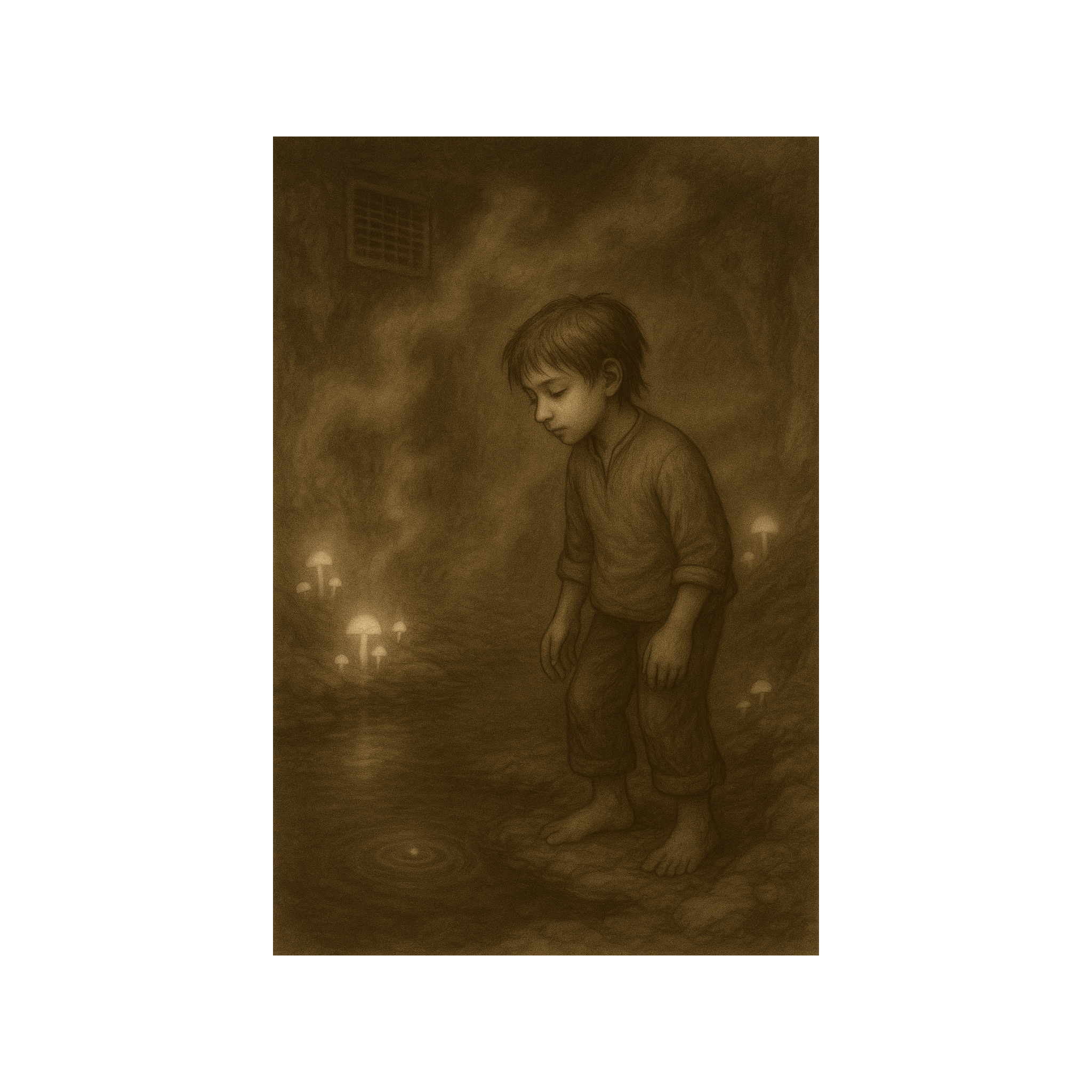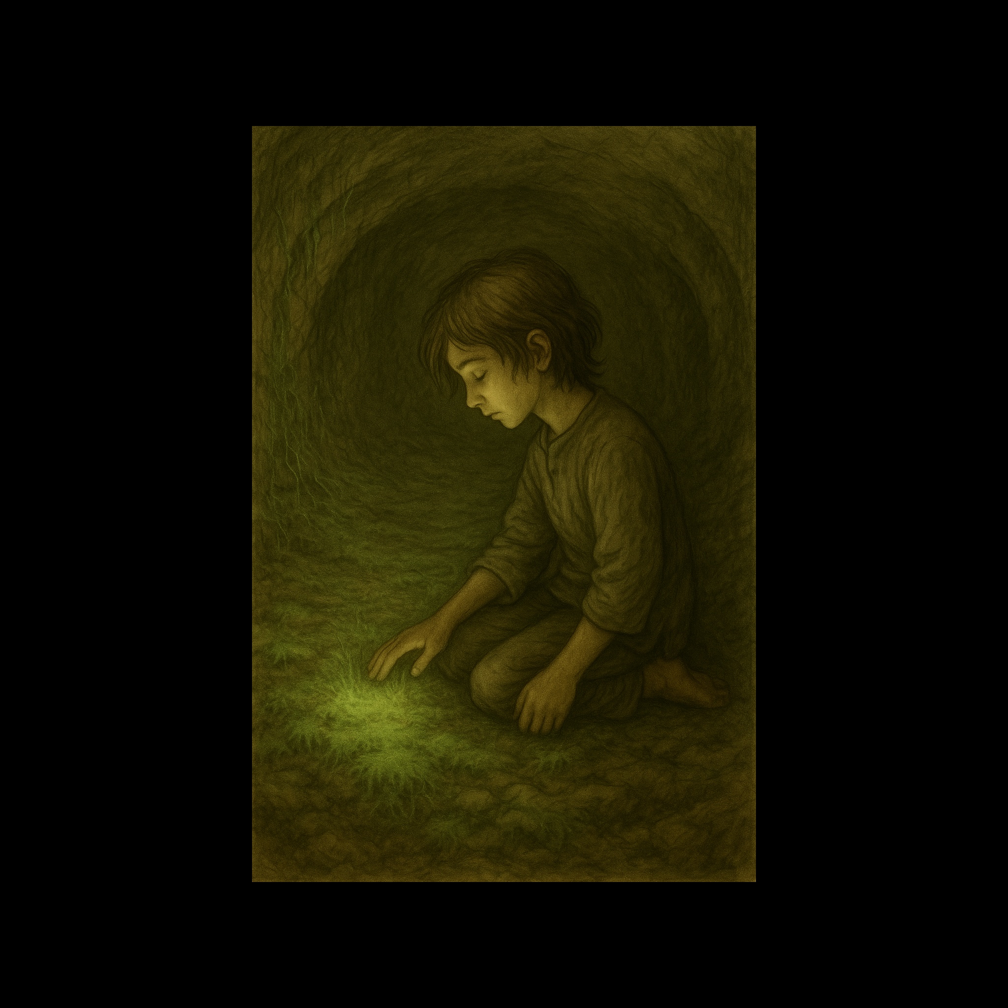 dripping textures, subterranean organic house, soft reverbs, soft, heartbeat-like bass pulses, tonal fragments of melody fading in and out like forgotten voices
