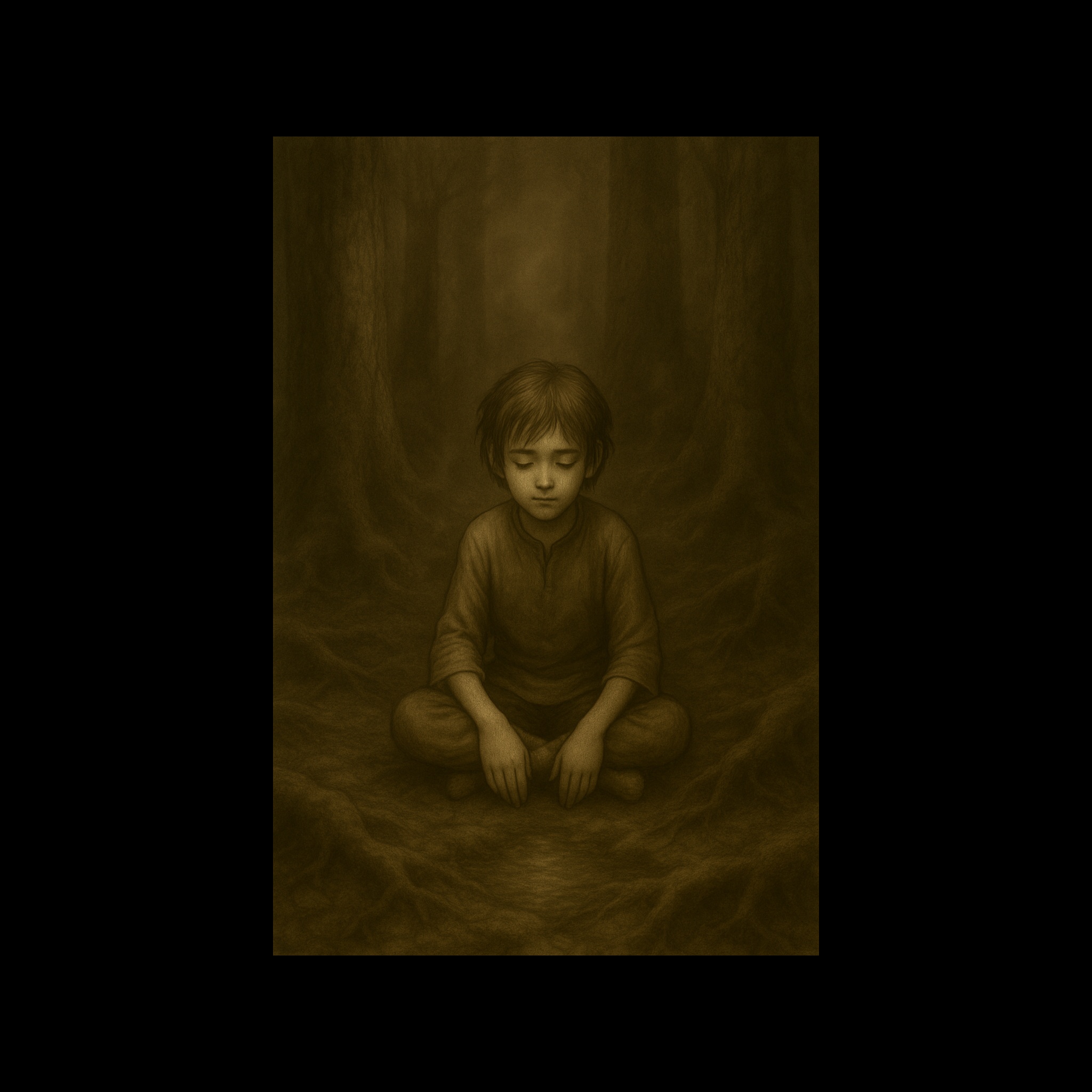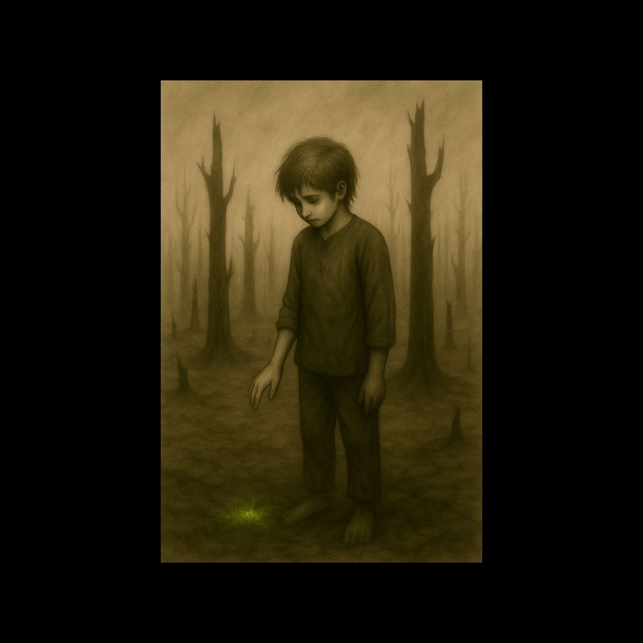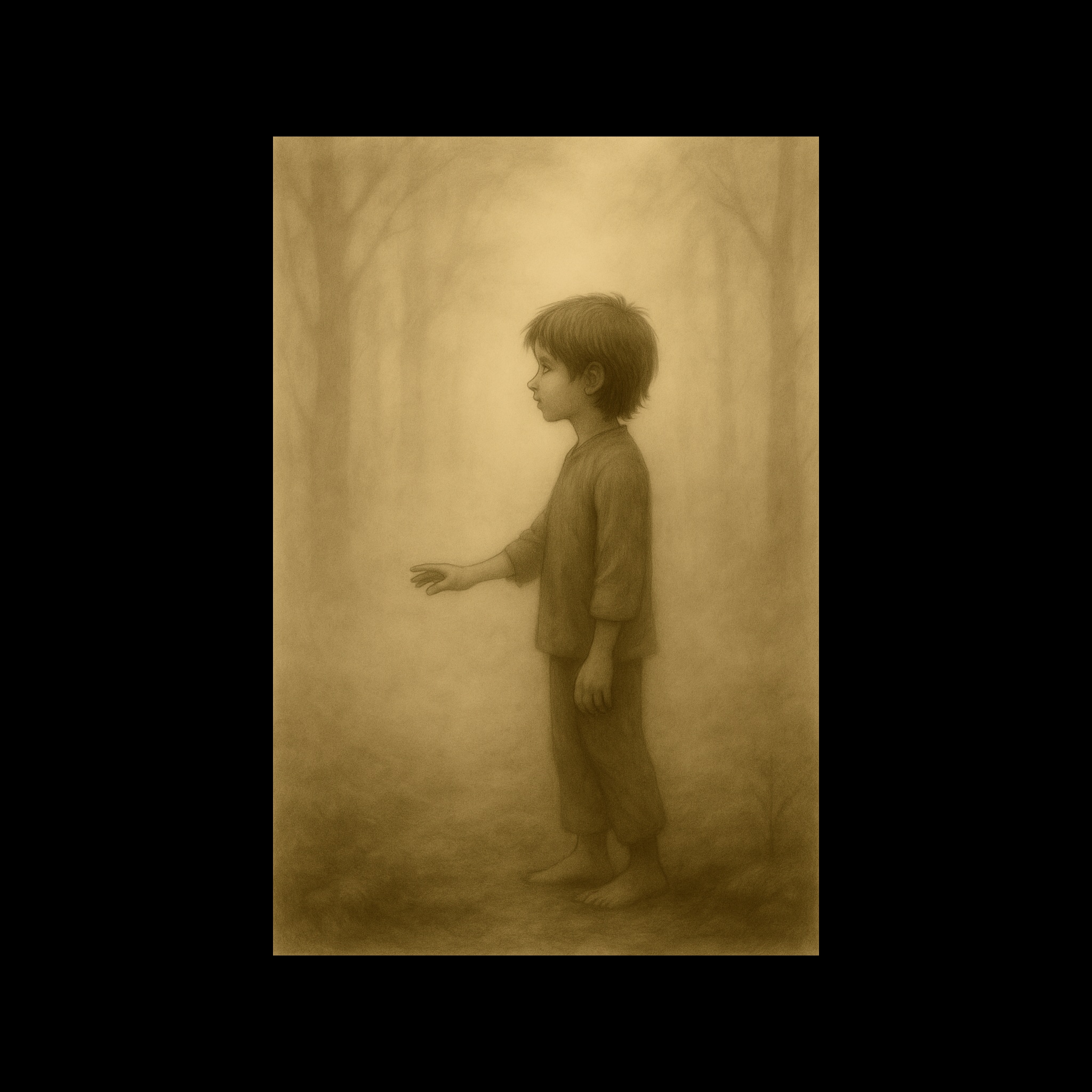 distant childlike voices, faint wind and birds, melancholic, ambient, dreamy, faint, soft piano, gentle strings, gentle, soft, electronic