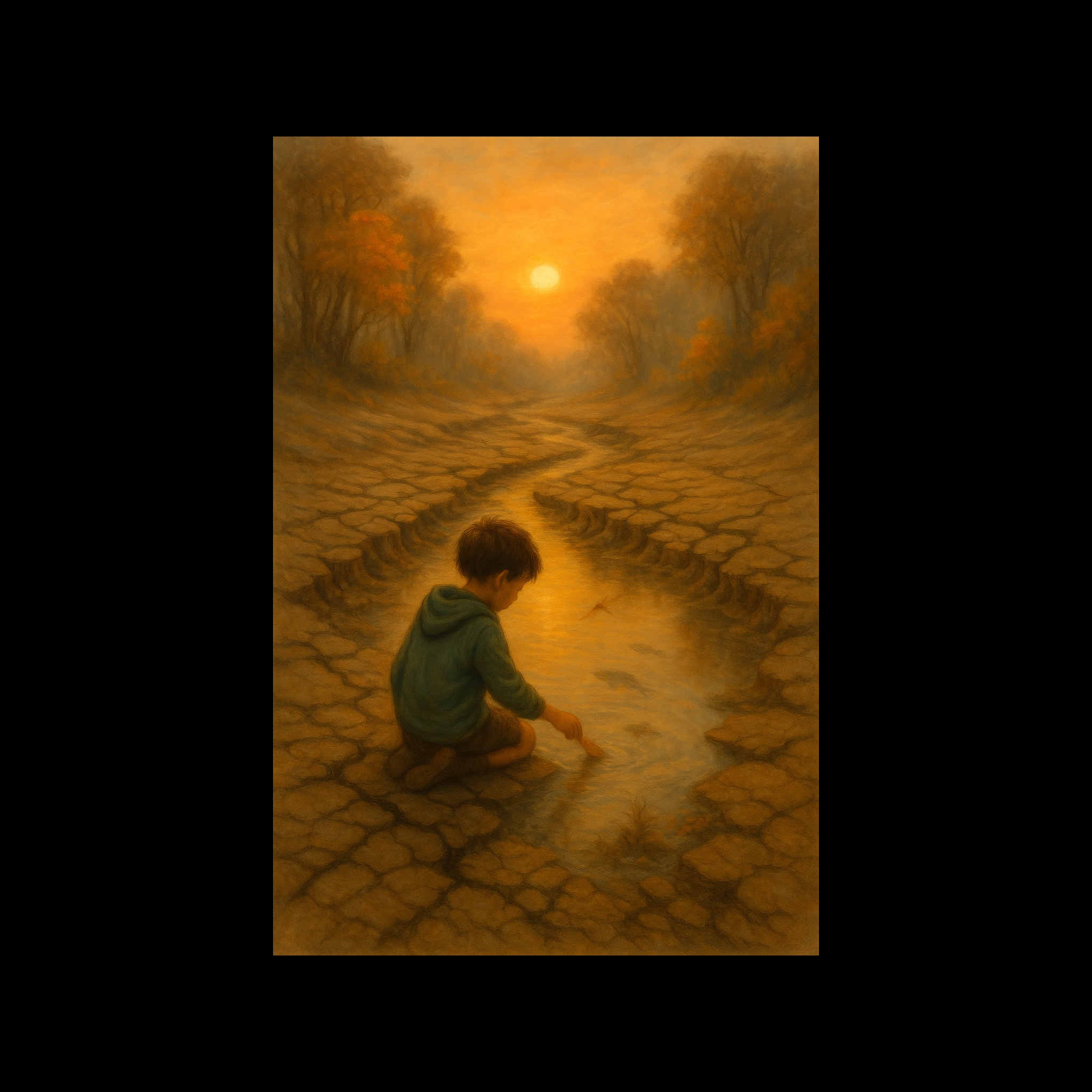 minimal, dusty tone, faint water drips, ambient, tone, soft humming voices, dry wind textures, melancholic but hopeful, soft, faint