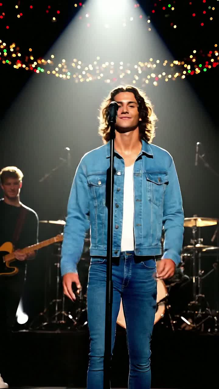 A festive, commercial radio-ready pop anthem opens with sleigh bells, jingle bells, and glockenspiel over crisp 4/4 drums, Electric guitar adds dynamic energy, Four male voices deliver catchy harmonies, weaving storytelling verses, Stadium crowd cheering enhances the live atmosphere throughout