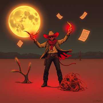 Country and Western, psy trance, Lots of Jews harp and banjos and some didgeridoo for good measure, Cowboy yodelling, Dramatic, western-style showdown