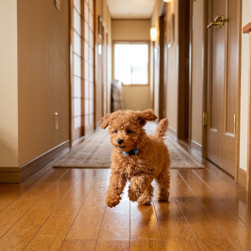 hard rock, garage rock, psychedelic rock, minor, 122BPM, powerful female vocals, lead electric guitar(bending, distortion, wah), 2nd electric guitar(power chords, feedback), Hammond organ(sustained chords, swirling leslie), electric bass(driving, punchy), drums(heavy kick, crashing cymbals), A girl puppy runs wild, crashes into walls, soaks up water, devours her meal, then collapses in sleep only to explode again at dawn — nonstop reckless energy with a tender moment hidden inside