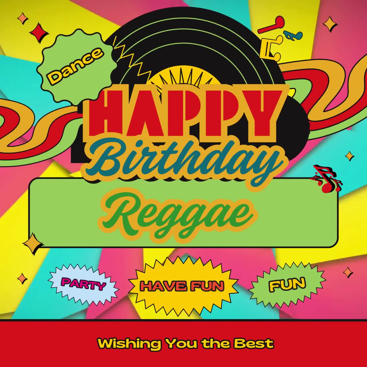 “Traditional ‘Happy Birthday to You’ melody performed with a laid-back reggae groove at 85 BPM, classic offbeat guitar on the upbeats, deep warm round bassline with steady groove, light rimshot snare on beats 2 and 4, subtle shaker and island percussion, smooth relaxed vocal delivery, gentle dub-style echo on the last word of each line, cheerful and uplifting island vibe, clean modern mix, authentic roots reggae feel blended with classic American birthday style, ”