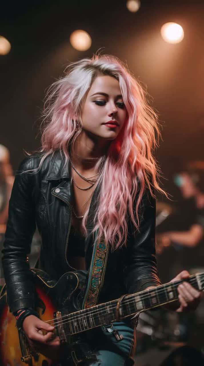 Live performance of a progressive indie rock song, female lead vocalist, powerful and expressive, raw emotional delivery, Dynamic indie rock band with clean arpeggiated guitars in verses, heavy distorted guitars in choruses, driving melodic bass, energetic live drums with progressive fills, Anthemic, empowering mood, soaring chorus, audience ambience, natural room reverb, imperfect live energy