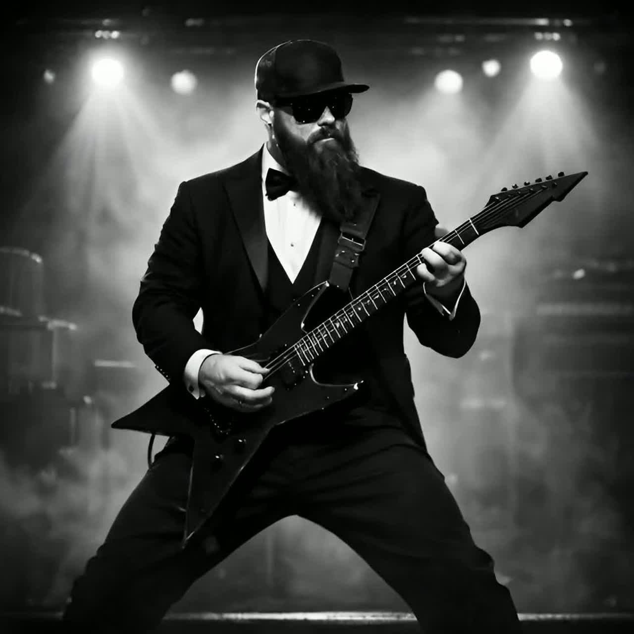 Blackened deathcore intro only (no vocals), Ominous atmosphere → catastrophic drop, Start with sub-bass drone, low strings, ruined-cathedral ambience, distant male choir, metallic scrapes, reversed cymbals, Guitars: downtuned 8-string tremolo in minor-second clusters, tritone swells, pick scrapes, palm-muted chugs, Drums: doom pulse at 70–85 BPM with tom rolls, then a brief blast-beat teaser, Production: huge low end, saturated/gritty, long dark reverb, Structure: 0:00–0:15 tension build, 0:15–0:28 gravity-sink with chugs + choir stabs, 0:28 hard choke (silence), sub-drop tail to cue the first verse, No melody, no bright synths, no cutesy textures, Mood: apocalyptic, frostbitten, cinematic, evil