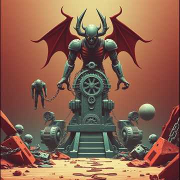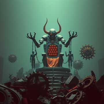This extreme death metal track erupts with low-tuned, dissonant guitar riffs and relentless blast beats, Deep Finnish growls lead, while mechanical, industrial-style percussion adds a machine-like pulse, Bio-mechanical sound effects and dense atmospheres heighten the brutal, unyielding impact