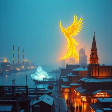 Finnish heavy metal, aggressive power metal, driving double bass drums, crunching guitars, fierce male vocals, epic choir, anthemic chorus, cold northern atmosphere, energetic, 130 bpm