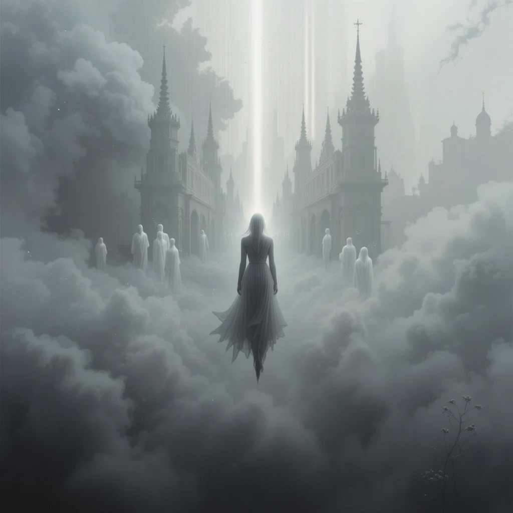 [Void unknown music mix, psychedelic underworld ghost ballad, 70 BPM, F minor, Persona: Schneewittchen OL, pure female vocals, breathy and fragile with slight distortion and trembling tone, Long 70-second ambient intro with evolving pads, reversed piano, ghost choir whispers and distant sub pulses, Atmosphere: sunless gray world, no spatial boundaries, floating time feeling, Structure includes slow verses, emotional chorus with wide reverb bloom, extended instrumental sections with synth solo, ghost choir textures and atmospheric breakdowns, Instrumentation: ambient pads, electronic drums minimal, sub bass pulses, piano textures, choir layers, granular effects, Vocal style: intimate close-mic, airy, expressive, slight pitch drift, layered harmonies, Mood: between existence and disappearance, spiritual, melancholic, immersive, Mix wide stereo, deep reverb, soft highs, controlled low-end, cinematic production, no harsh transients, focus on emotional depth and floating sensation, ]