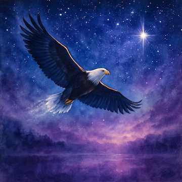 Ballad about a soul rising like an eagle into the sky, The song begins softly – like dawn breaking, Each section builds gradually in power and instrumentation, like gaining altitude, The feeling should be one of peace, transformation, and weightless flight – not grief, The chorus should feel like pure elevation – soaring, open, and full of light, By the final chorus, the sound should open fully – like flying above clouds, triumphant and serene, End with a gentle fade, like the eagle gliding into the endless sky