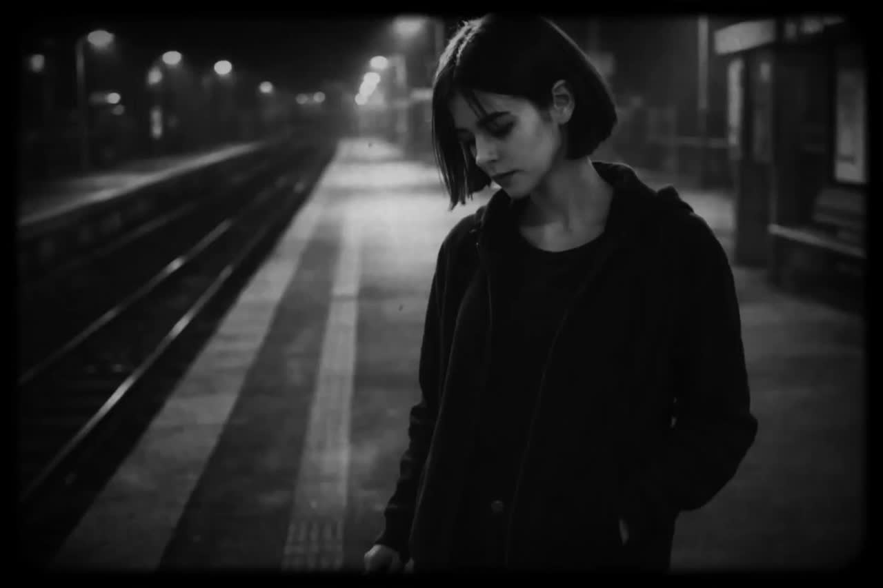 Dark pop and art pop fusion with cinematic minimalism, deep sub-bass pulses, sparse piano motifs, textured analog synth layers, distant reverb-heavy percussion, and subtle glitch elements, Female lead vocal with breathy intimacy shifting into haunting layered harmonies, Slow to mid-tempo with heavy low-end emphasis, Includes atmospheric pads, reversed textures, heartbeat-like bass thumps, and soft industrial impacts, Emotional tone is cold, fragile, and introspective with moments of swelling intensity, Focus on negative space and tension, evolving from minimal isolation to dense harmonic weight in choruses