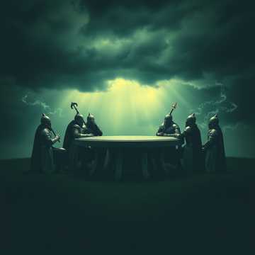 bardcore with Celtic folk metal influence, bardcore, lyre, mandolin, harp, drums, flute, heavy metal bardcore, minstrel, Irish brogue baritone male vocals, leitmotif, industrial