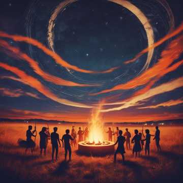 Experimental choral sci-fi anthem rooted in loyalty, justice, and cosmic reverence, Clean, shimmering guitars float in delayed plucks and ambient swells, creating weightless tension between phrases