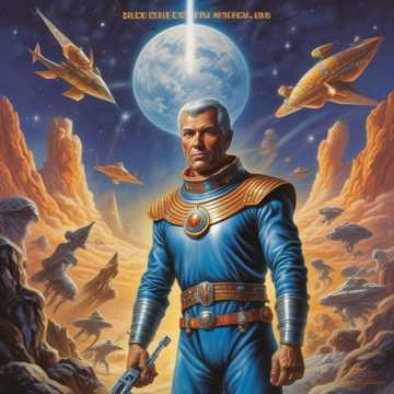 Tv Series, Orchestral, futuristic, bold brass, sweeping strings, pulsating percussion, cosmic synths, heroic, adventurous