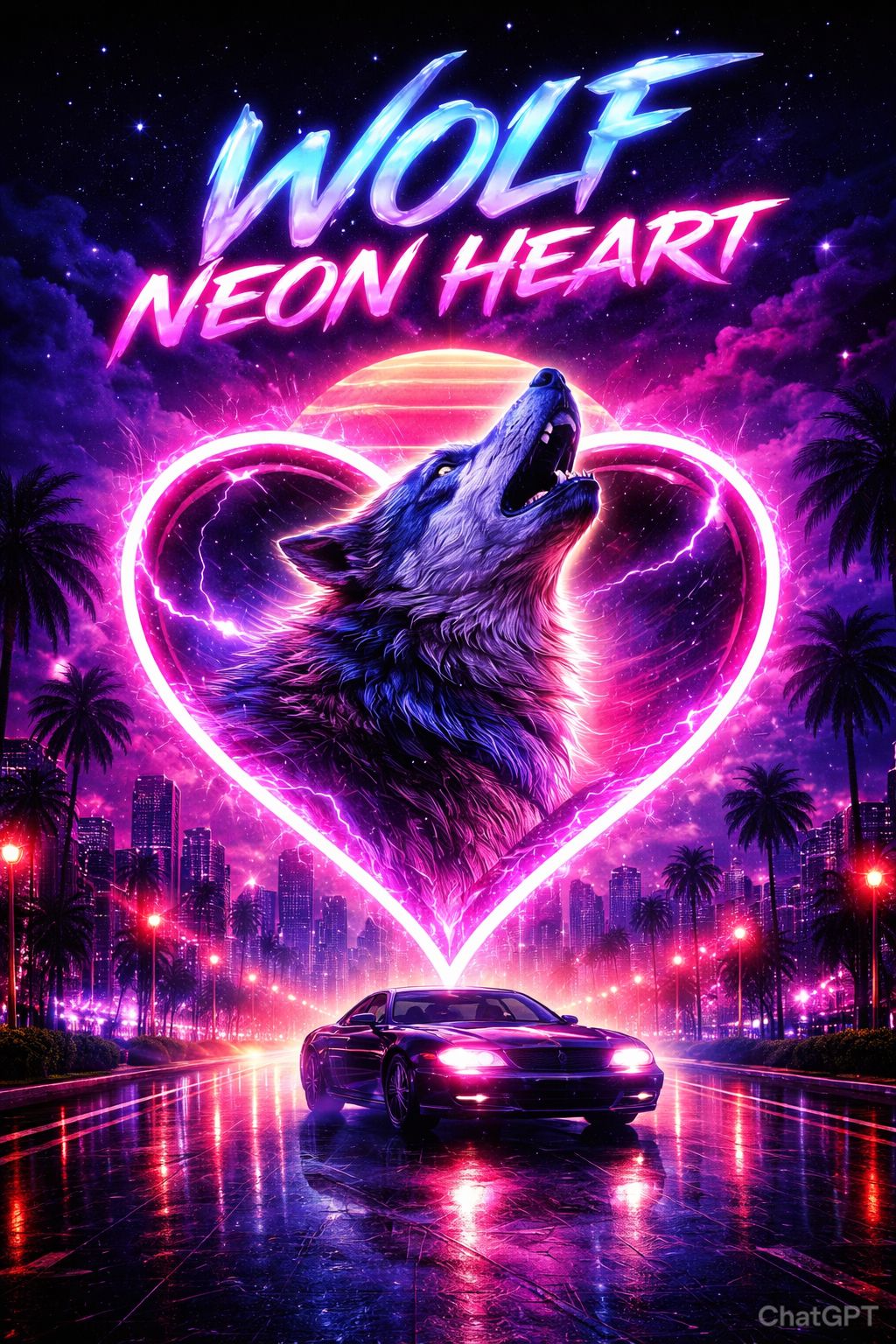 Intro with pulsing analog synth and filtered noise swell, Synthpop / Electro track at ~120 BPM, Driving sidechained bass, crisp electronic drums, arpeggiated synths, and a recurring “wolf call” lead synth motif, Dark neon cyberpunk atmosphere, emotional but energetic, Male or androgynous vocal with light vocoder layers, catchy melodic chorus, cinematic outro fade
