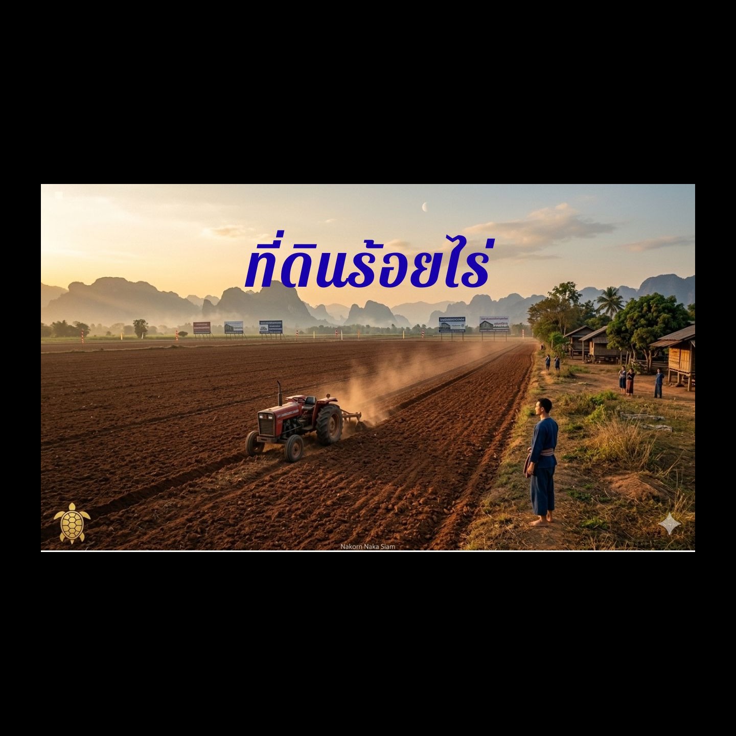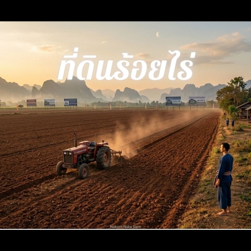 Thai cinematic folk with reflective social tone, medium tempo around 95 BPM, Male Thai vocal calm and storytelling, Instruments: acoustic guitar fingerstyle, Thai flute (khluay), soft drums, subtle bass and atmospheric strings, Song about a vast hundred-rai field being leveled by tractors while someone quietly observes the scene and feels sympathy for buyers who may not know the hidden truth beneath the land, Mood thoughtful, calm but powerful, like witnessing the reality of society from a distance, Chorus emotional and expansive, ending with gentle flute and ambient wind over open fields