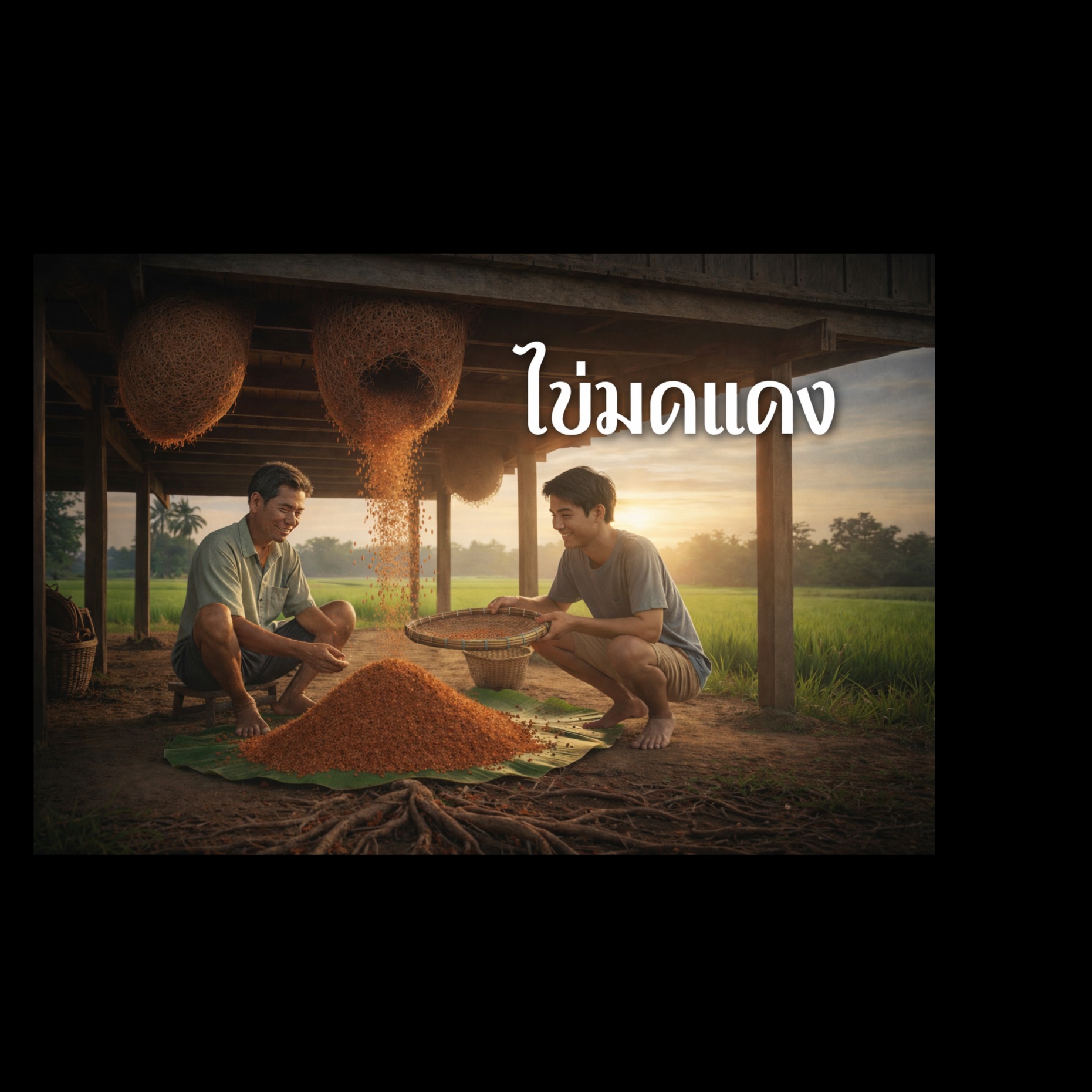 Thai folk / phuea chiwit inspired song with warm acoustic guitar, light phin or traditional strings, gentle percussion, emotional male vocal, Mood: humble, earthy, inspirational, rural life philosophy, Not comedic, Deep and meaningful, Gradually builds emotion toward a powerful chorus, Theme about patience, growth, and unexpected abundance from hard work, Write a Thai phuea chiwit / folk song titled “ไข่มดแดง”, Use simple rural imagery as metaphors for life success, The song should feel timeless, sincere, and wise, Avoid slang or comedy tone, Focus on themes of perseverance, quiet effort, and destiny arriving naturally, Chorus must be memorable and emotionally uplifting, Make the chorus iconic and easy to sing along, like a classic campfire folk anthem
