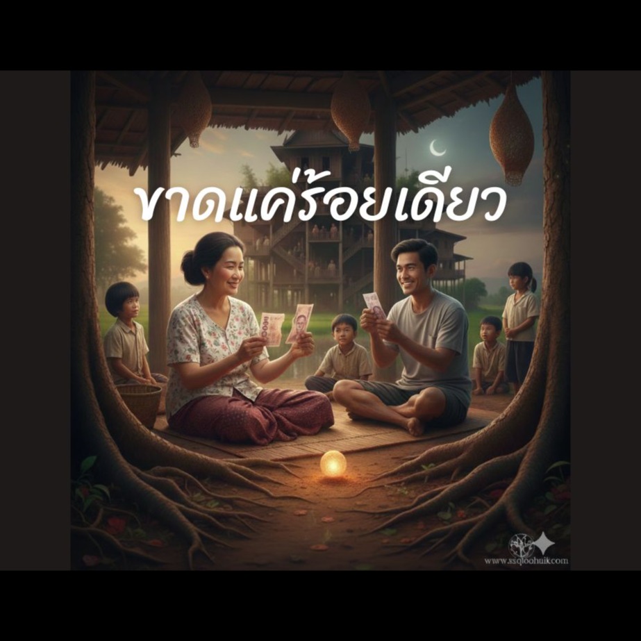 Lyrics poetic, narrative, non-preachy, rural wisdom tone, Vocals intimate, close-mic, slightly breathy, sincere, Chorus should feel like a soft realization, not a climax, Atmosphere: dim roadside light, coins in hands, mother’s presence as silent moral compass, sacred simplicity, Language: Thai, Title: “ขาดแค่ร้อยเดียว (One Hundred Short)”