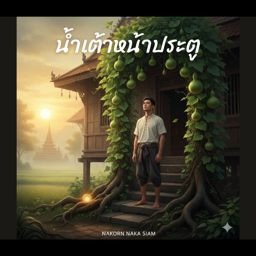 Male vocal, warm and calm Thai folk storytelling style, Acoustic guitar solo, slow to mid tempo, intimate, minimal arrangement, Mood: peaceful, reflective, grounded, quietly powerful, Theme: abundance arriving naturally, patience, destiny, silent success, Lyrics in Thai, Verse 1: Morning breeze, house gate, hanging green gourds growing naturally, Verse 2: No rush, no announcement, things grow in their own time, Chorus: If it’s not time, don’t pick it yet, What ripens in stillness lasts longer, Verse 3: Past struggles, long journey, today choosing calm over competition, Bridge: People pass by, some stop, some don’t — destiny reveals itself, Final Chorus: Quiet confidence, letting life speak for itself, Outro: Soft guitar fade, peaceful ending, Vocal style: honest, slightly husky, emotional but restrained, No drums, no synth, pure acoustic feeling, Signature sound: Naka Siam