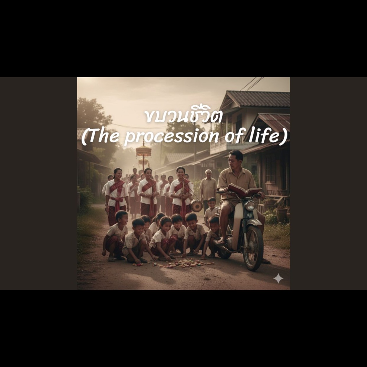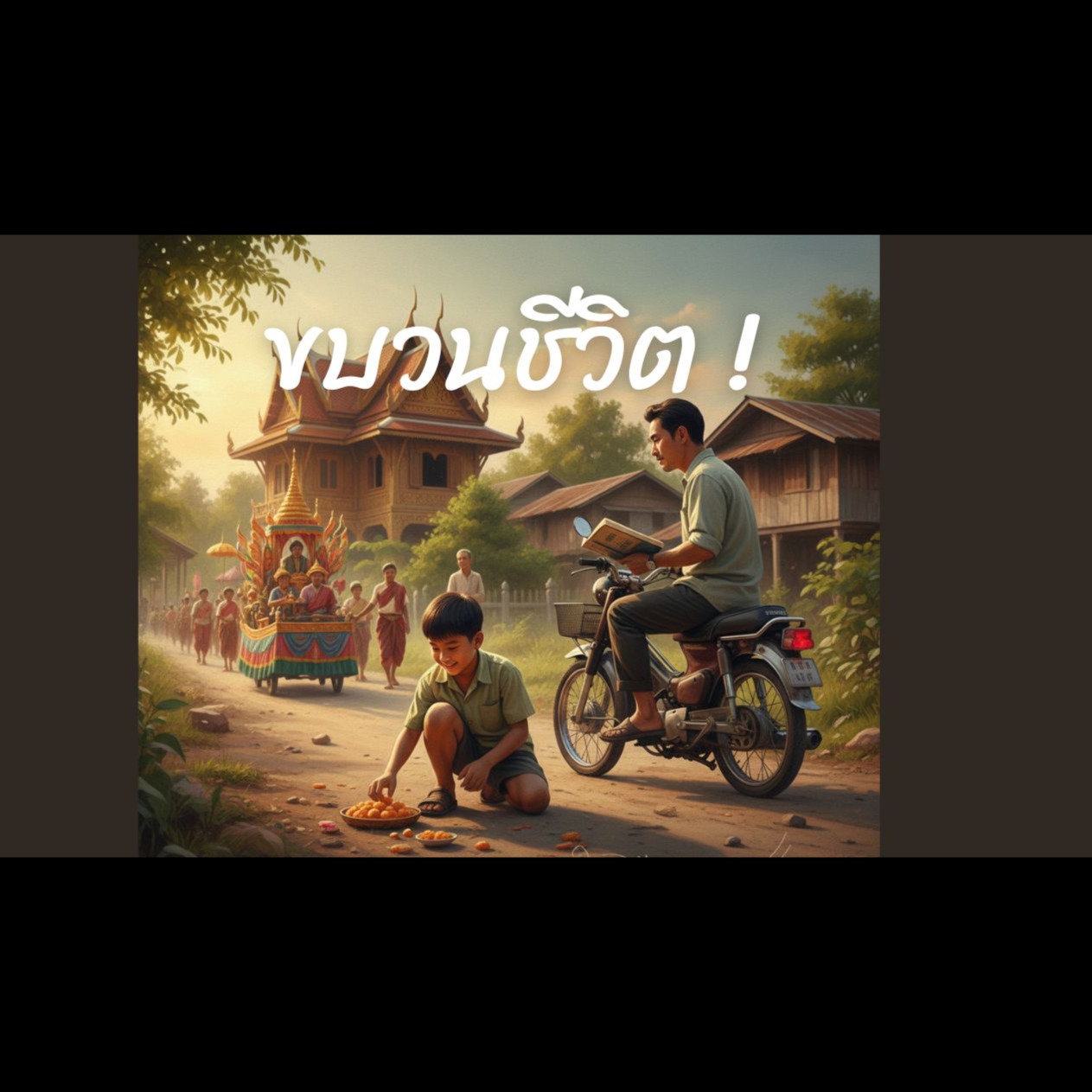 Thai cinematic folk with reflective philosophical mood, mid-tempo around 95 BPM, Male Thai vocal warm and sincere storytelling, Instruments: acoustic guitar, gentle flute, soft khaen, light percussion and bass, The song uses the metaphor “life is like a motorcycle taxi ride, ” describing how people come and go in life’s journey, Atmosphere thoughtful, emotional but calm, countryside feeling, smooth melodic chorus, cinematic yet simple, Ending with soft guitar and flute harmony creating a peaceful reflective feeling