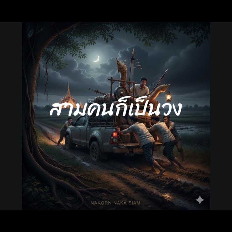 Thai sacred folk / mythic epic song with Naka Siam signature, Slow–mid tempo, deep emotional, grounded and dignified, Instrumentation: soft Isan lute (พิณ), low acoustic guitar, subtle bass pulse, frame drum, distant cinematic pad, minimal percussion, Mood: perseverance, quiet pride, sacred resilience, humble strength, Vocal: warm male vocal, calm but resolute, storytelling style, no exaggeration, emotional restraint, occasional whispered lines, Arrangement builds slowly, never flashy, strong lyrical focus, cinematic but earthy, No pop, no EDM, no trap