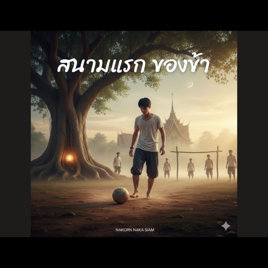 “สนามแรกของข้า (The First Field)”, Tone: sacred, warm, grounded, nostalgic but powerful, Tempo: mid-slow breathing rhythm (not sleepy), Theme: destiny revealed through simplicity and origins, Imagery: a man playing football on his childhood primary school field, left midfield position, unmarked, calmly crossing the ball;