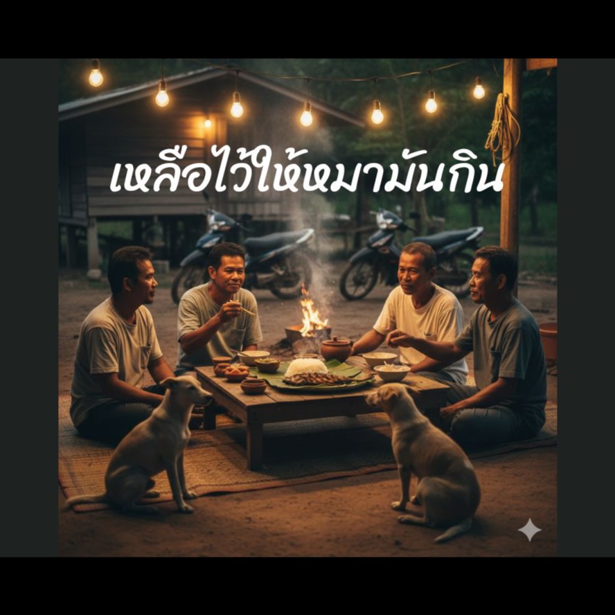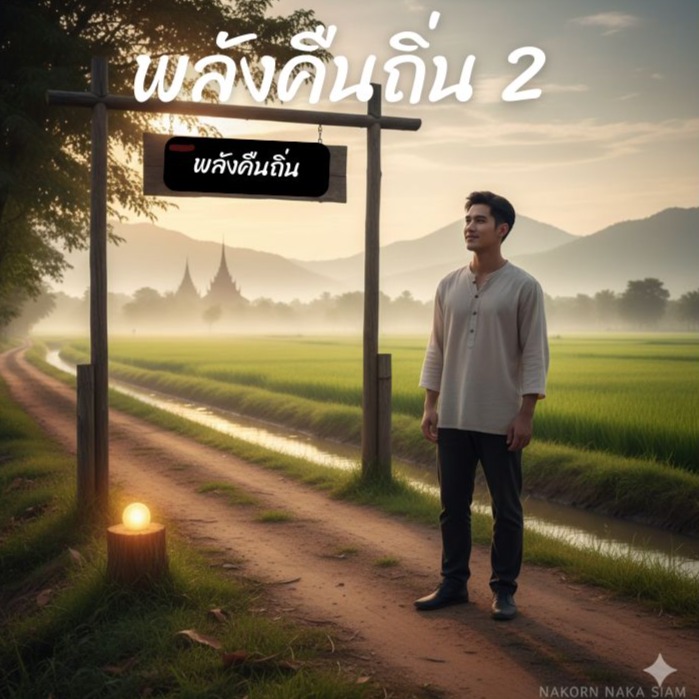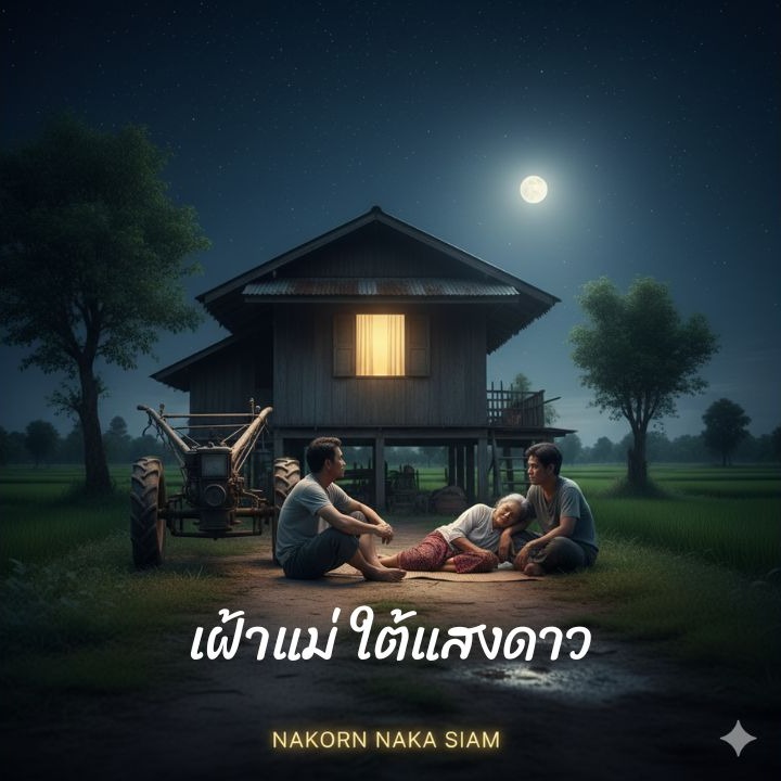 Create a semi-mystical Thai folk song inspired by a dream of old friendship and filial devotion, Tone: warm, sacred, humble, deeply emotional but simple, Story: a man dreams of a childhood friend returning to their rural hometown on a handmade wooden tractor, sharing the burden of caring for a sick mother alone, The narrator offers to stay the night, symbolizing loyalty, compassion, and unseen merit, Atmosphere: moonlit village night, quiet breathing, wooden house, starlight above rice fields, Music: Thai folk fusion with phin, bamboo flute, soft khaen tones, subtle cinematic pads, slow steady rhythm (not sleepy), Vocals: intimate, sincere, slightly husky, spoken-song feeling, Chorus should express that true merit comes from simply staying beside someone in hardship, without words or praise, Emotion: gratitude, karma, friendship beyond time, gentle spiritual strength, Language: Thai, Style: — sacred but grounded, rural soul, not commercial