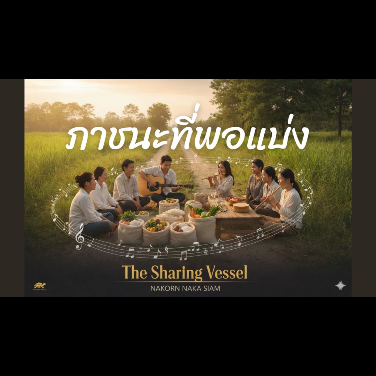 Song concept: “ภาชนะที่พอแบ่ง” – A story about walking mid-journey, meeting people asking for plastic bags, choosing strong containers instead of fragile ones, inviting old musician friends to share a meal, Theme focuses on responsibility, structure, sharing, and enoughness, Not dramatic, not sad, Steady build, memorable but grounded chorus, Energy: Balanced, forward-moving, cinematic but organic, suitable for live band feel