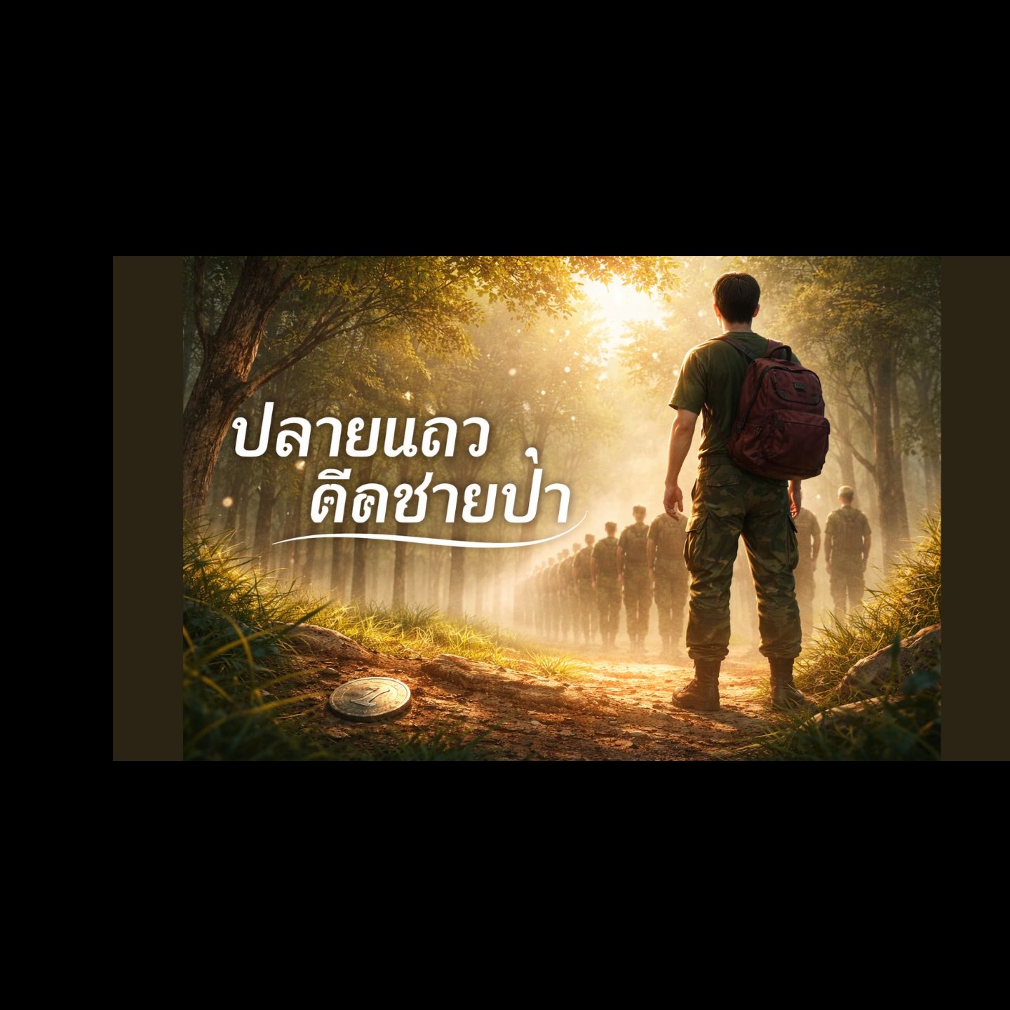 Song concept: “ปลายแถวติดชายป่า” – A life reflection about donating an old backpack to a former school, picking up a small coin with meaning, entering a disciplined formation, standing at the end of the line near the forest, Theme focuses on humility, responsibility, maturity, and quiet strength, No hype, no sadness, Energy: Forward-moving, balanced groove, memorable chorus with strong rhythmic phrasing, suitable for live band feel