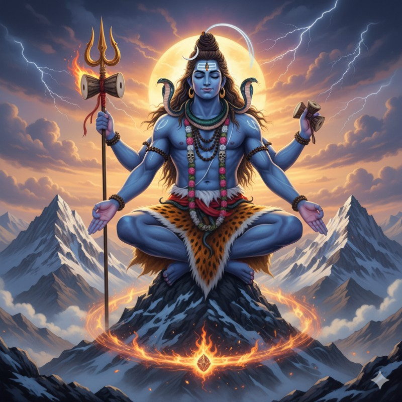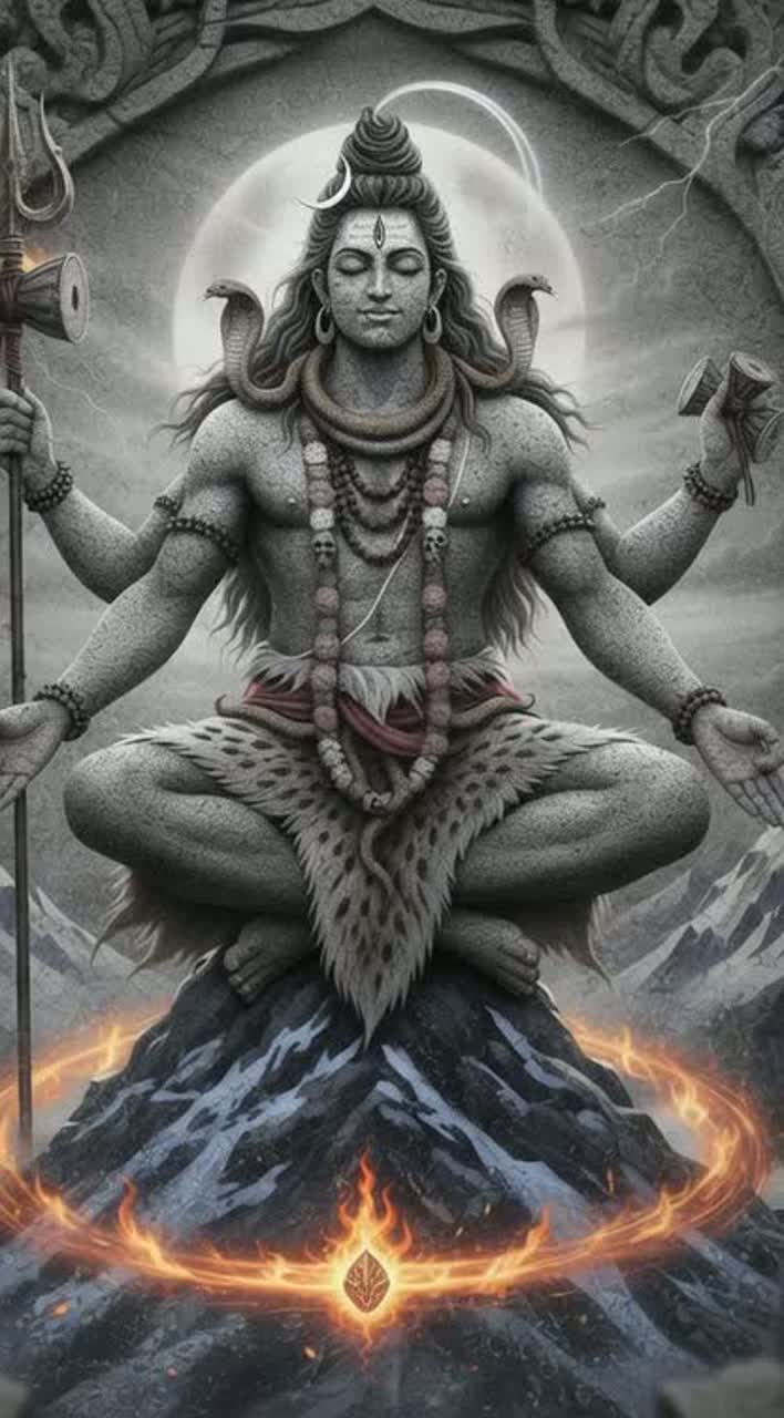 Bangla, Indian rock-pop, Minor, 110 BPM, Female alto vocals, Sitar melodic lines with intricate devotional ornamentation inspired by Shiva motifs, Tabla and Dhol rhythms emphasizing traditional Bangla grooves with meditative pauses, Mridangam accents highlighting cosmic dance steps, Bansuri flute harmonics echoing prayers and celestial whispers, Tanpura drone sustaining a serene, sacred ambience, Santoor arpeggios adding shimmering, reverent textures, Shehnai melodic embellishments evoking temple rituals, Electric guitar with gentle, warm distortion supporting emotional depth, Bass guitar groove grounding rhythm subtly, Drum kit with Indian rhythmic fills and restrained Dhol syncopation, Hand percussion layers including Kanjira and Manjira, Vocal harmonies reflecting classical Indian ornamentation and gliding transitions, Gong, bell, and chime textures enhancing sacred atmosphere, Uplifting yet contemplative mood, Graceful Bangla-inspired dance rhythm throughout, Fully embodying Shiva'