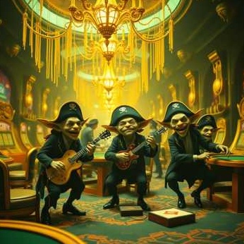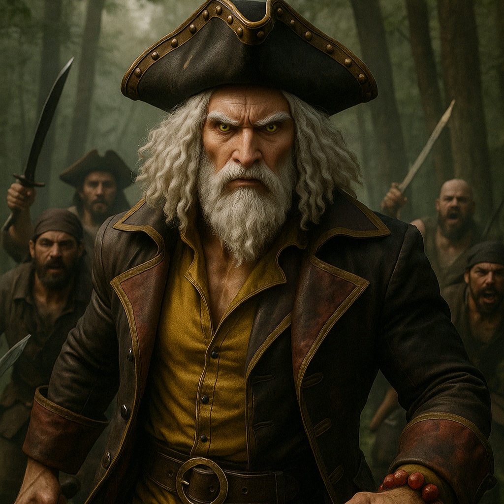 minor key, pirate shanty, catchy, dark, groovy, energetic, dramatic buildups, twangy