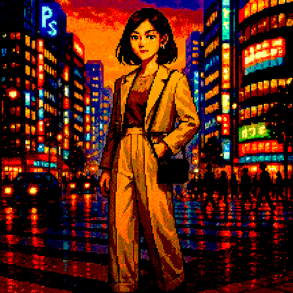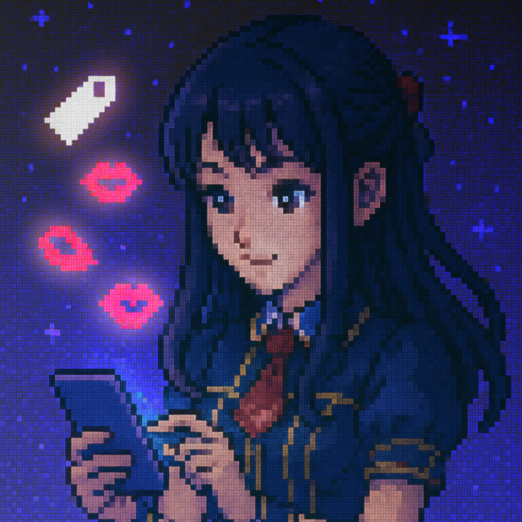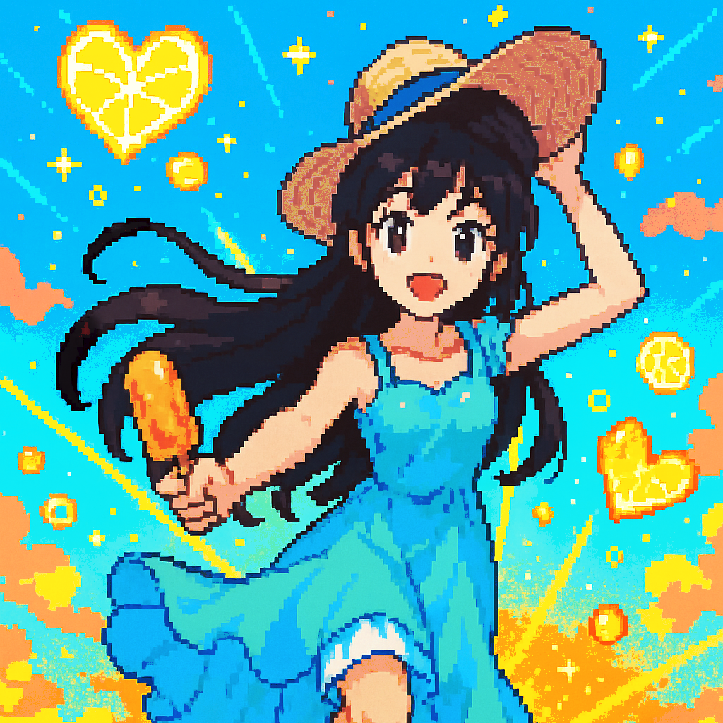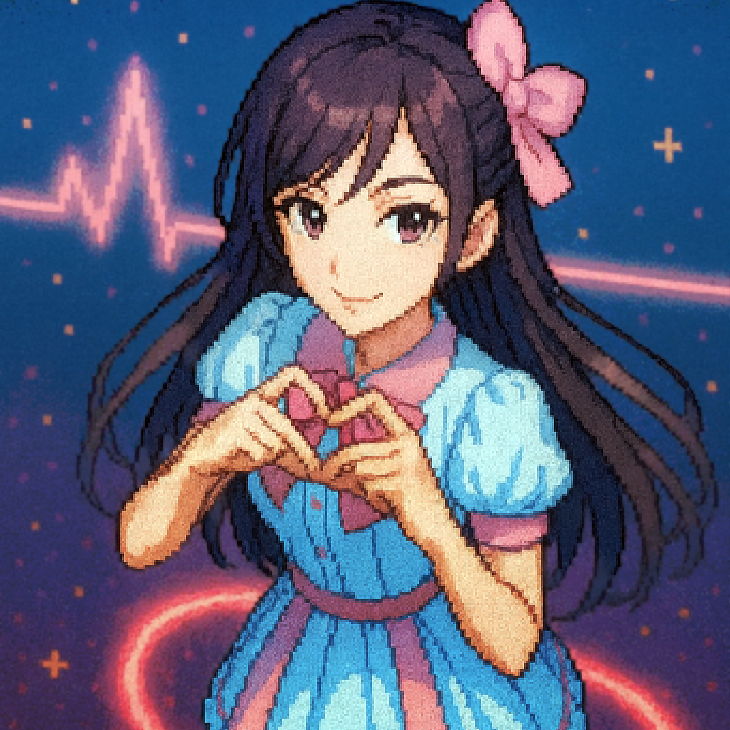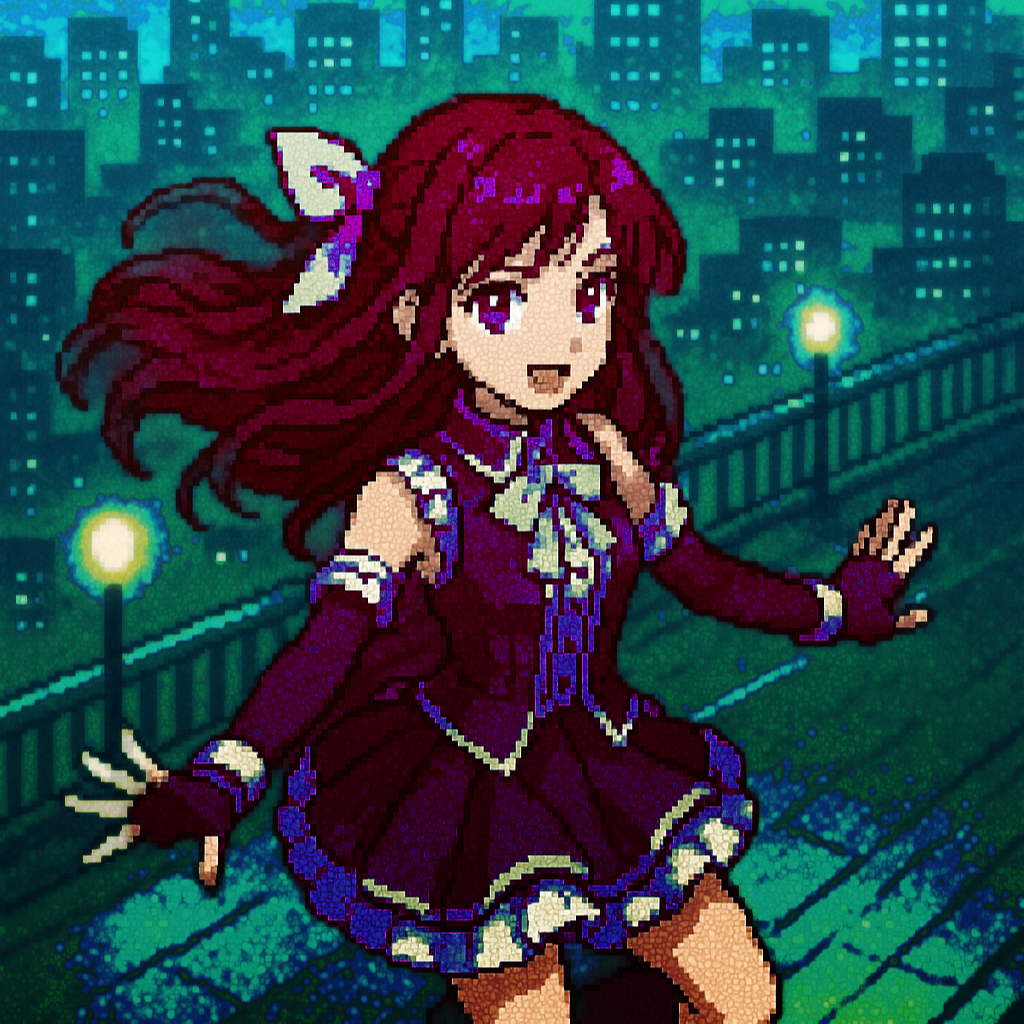 Style: Glossy Japanese kawaii Electro-Pop / Future Disco, 128 BPM, key F♯ min, Drums – four-on-floor kick, crisp snare, bright 16-hat, airy clap, Bass – rubbery syncopated synth bass, octave hops, side-chained, Synths – supersaw chords, glitter 16th arpeggio, FM pluck fills, Lead – pentatonic saw riff with slides; chopped *wordless* vocal shots, FX – reverse cymbal, vinyl down-lifter, bit-crush rise, wide noise, Form