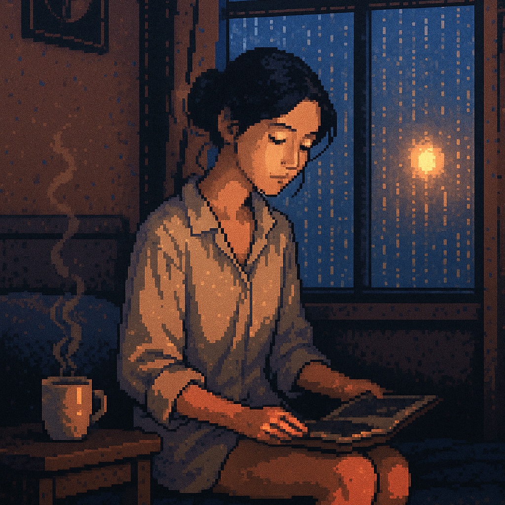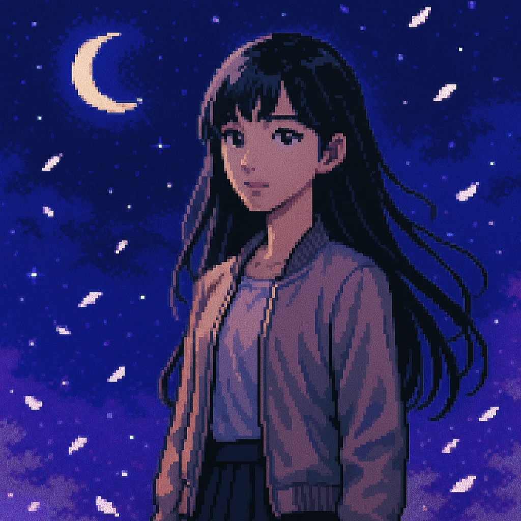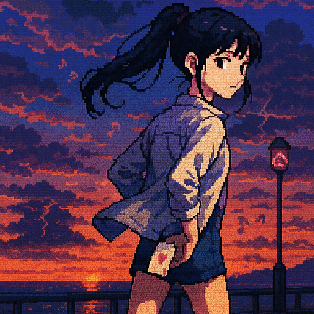 Vocals: Japanese female idol style, straight-tone (flat) delivery with minimal vibrato, bright head-voice, crisp Japanese diction, cute yet precise, Create a new classic soul and chiptune hybrid instrumental for introspective, nostalgic Japanese lyrics, Tempo: 90 BPM, Key: C# minor, Drums: warm 808 kick, crispy snare with slight bit-crush, swung hi-hats and occasional hand-claps, Bass: deep sine-wave sub-bass with subtle slides, Chiptune elements: bright 8-bit arpeggio riff, square-wave lead, nostalgic blips and bleeps for fills, Keys/Pads: lush atmospheric pads in minor tonality, gentle vinyl crackle underneath, Arrangement: start verses with sparse chip percussion and sub-bass; build into full boom-bap groove and layered 8-bit melodies in the chorus, Add whispered vocal chops lightly filtered for intimate texture, Blend organic boom-bap warmth with playful retro game textures to match the yearning mood of the lyrics
