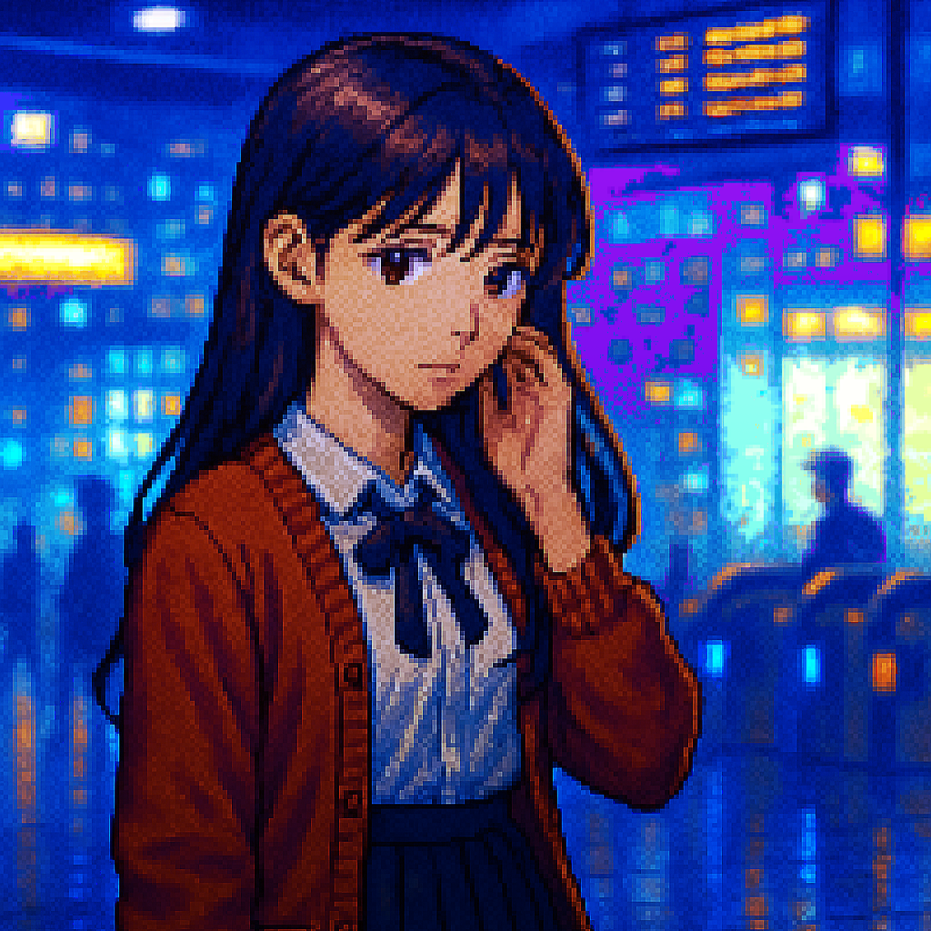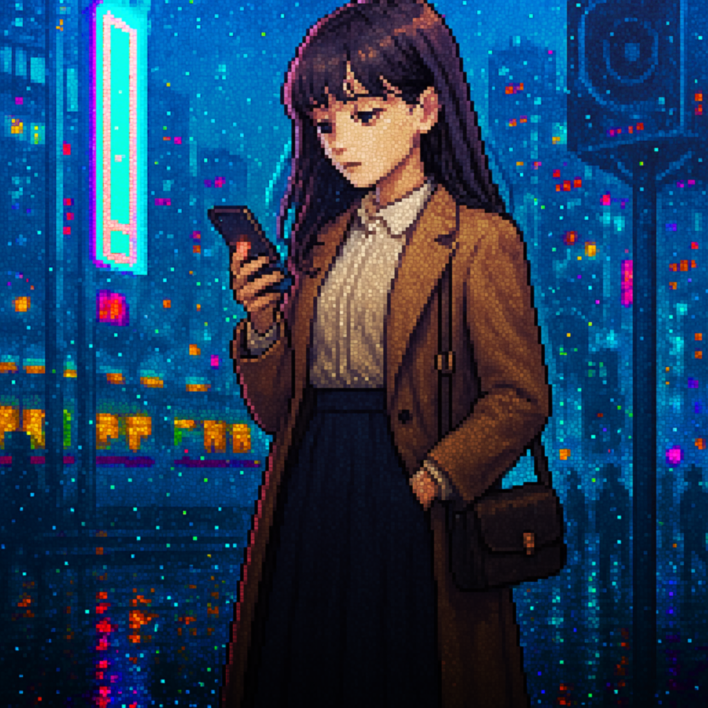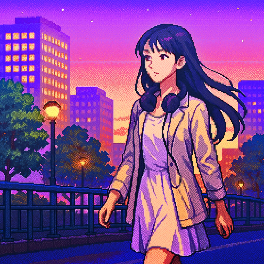 Vocals: Japanese female idol style, straight-tone (flat) delivery with minimal vibrato, bright head-voice, crisp Japanese diction, cute yet precise, Create a new classic soul and chiptune hybrid instrumental for introspective, nostalgic Japanese lyrics, Tempo: 90 BPM, Key: C# minor, Drums: warm 808 kick, crispy snare with slight bit-crush, swung hi-hats and occasional hand-claps, Bass: deep sine-wave sub-bass with subtle slides, Chiptune elements: bright 8-bit arpeggio riff, square-wave lead, nostalgic blips and bleeps for fills, Keys/Pads: lush atmospheric pads in minor tonality, gentle vinyl crackle underneath, Arrangement: start verses with sparse chip percussion and sub-bass; build into full boom-bap groove and layered 8-bit melodies in the chorus, Add whispered vocal chops lightly filtered for intimate texture, Blend organic boom-bap warmth with playful retro game textures to match the yearning mood of the lyrics