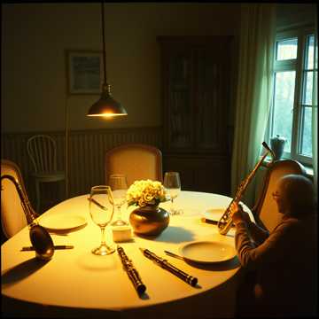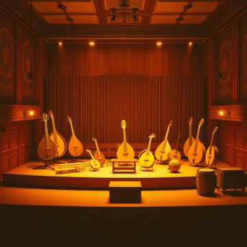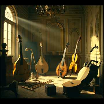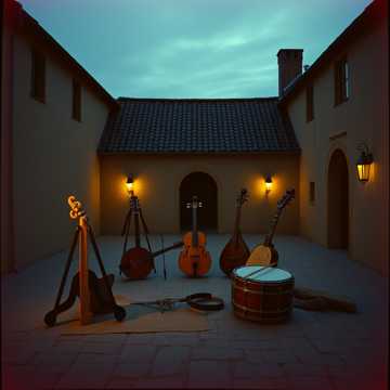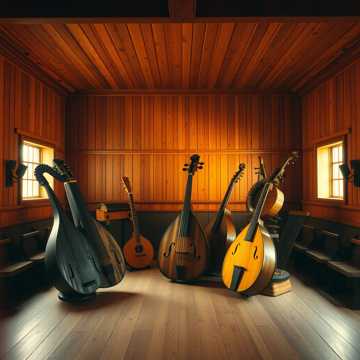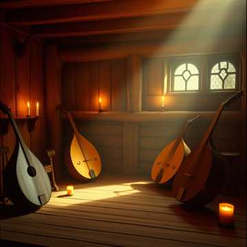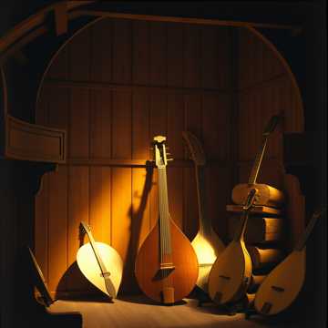 track prominently featuring classical instruments in a traditional early clan hurdy-gurdy folk bands that were made no later than that of the 16th century: Symphonia hurdy-gurdy, Lute, Flat goatskin tabors, Shawms, and other wood wind, wood percussion, and wood string instruments; each instrument can clearly be heard, production is clean and stereo image uses L/R panning