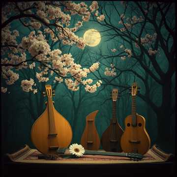 Vocal chorus, Create a dreamy Middle Eastern melody with medieval tones using harp, cello and tabla drums, dark and mysterious, Slow hypnotic rhythm evoking mystical Eastern nights under starry skies