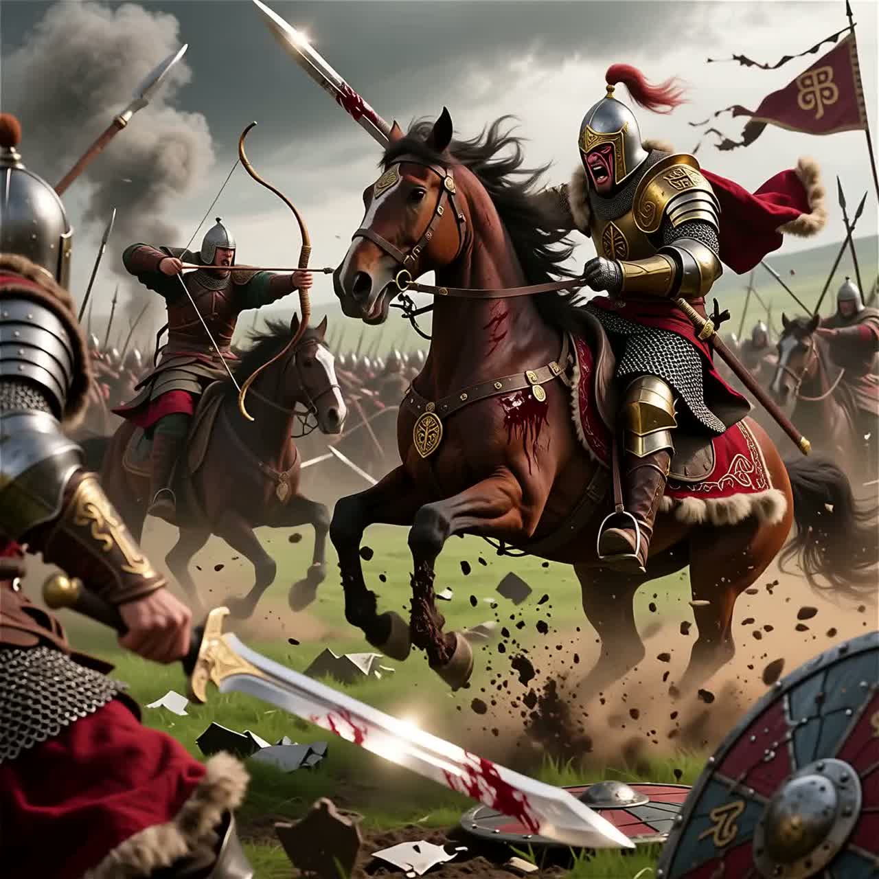 Medieval Viking chant • Tempo: Slow to mid, steady like marching boots, • Instruments: