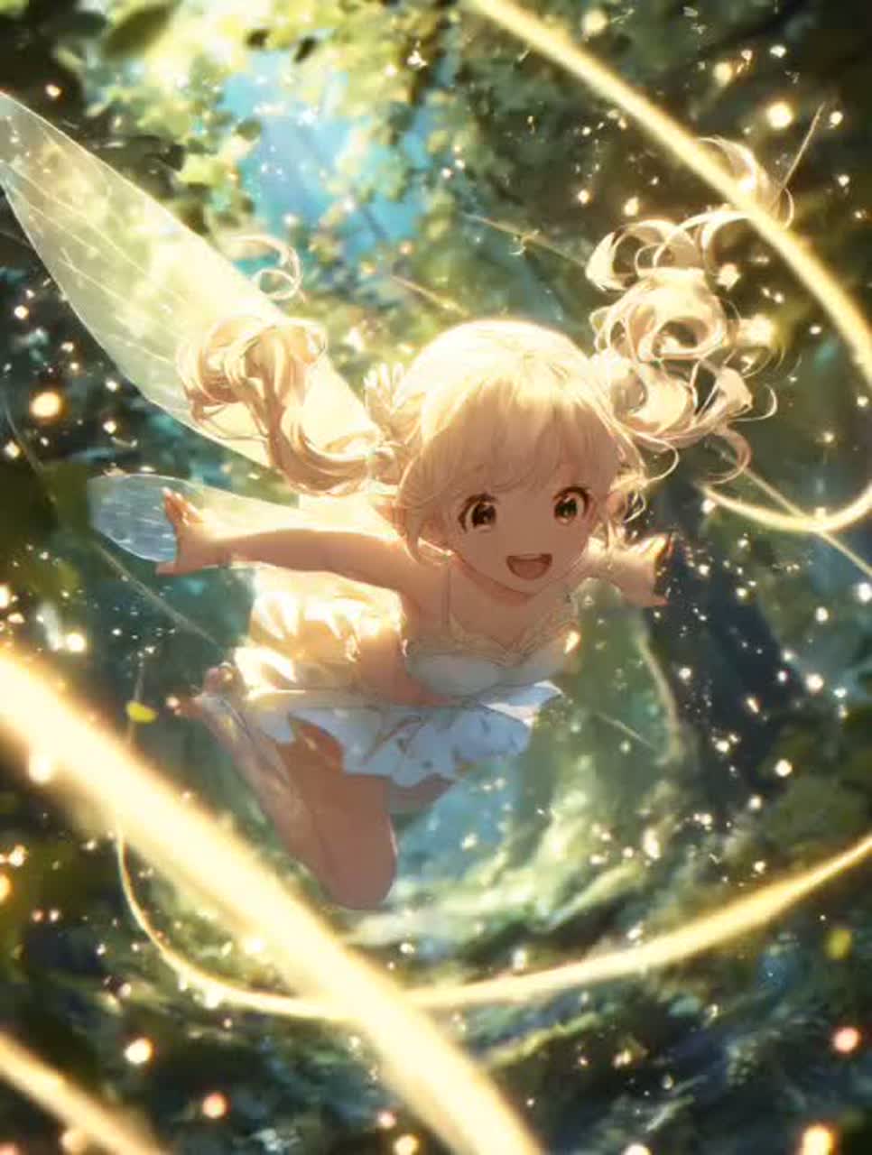 Kawaii, female vocals, Create upbeat, cute anime opening lyrics for a story about Lurie, a mischievous female fairy who tries to play tricks but always ends up helping people, Tone: bright, energetic, magical, and heartwarming, suitable for female vocals, Include light, wings, forests, small miracles, and the excitement of starting a journey, Show her playful nature and the bond with her companions (Alicia the swordswoman, Mild the alchemist, Luna the bard), Avoid mentioning reincarnation, Structure: Verse → Pre-chorus → Chorus → Verse → Final Chorus, Title optional
