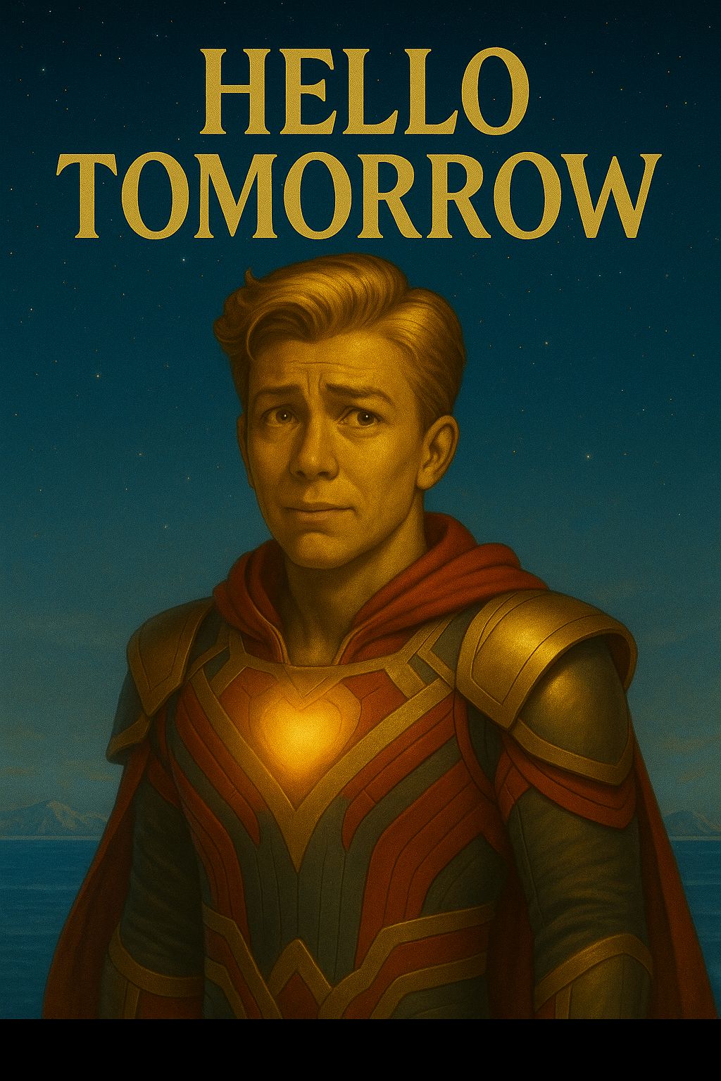 Vocal Style: youthful male voice, same awkward tone but calmer and deeper with maturity, Still shy and gentle; slight rasp when he smiles through words, Sounds self-aware but human, Instrumentation: warm 808s, glowing pads, gentle electric guitar riff layered with soft piano, Atmosphere: sunset gold fading into dusk, echoes of starlight, calm after growth, Mood / Theme: reflection, quiet confidence, peace in imperfection, Emotion: he’s not a god trying to understand love anymore — he’s a man who finally does, and he still sounds a little nervous saying it out loud, male vocals