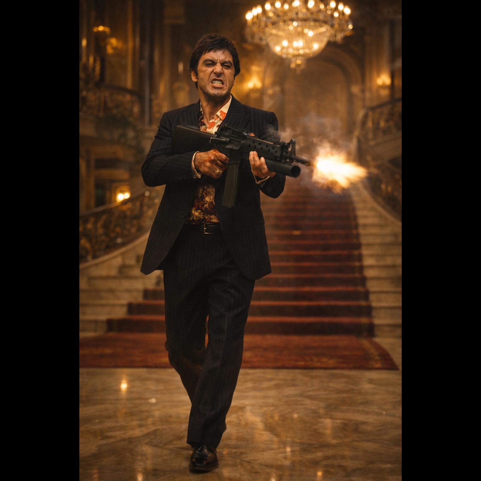 dark retro 80s Miami synthwave, pulsing Giorgio Moroder-style synth basslines and arpeggios, dark cinematic synth stabs, subtle Latin percussion accents, mid-tempo around 110-120 BPM with dramatic builds and aggressive drops, intense aggressive male vocals raspy guttural snarling delivery with Cuban accent edge, raw shouted intensity inspired by Al Pacino's explosive style, no smooth rap flow, direct instrumental intro no vocal humming, precise delivery from lyrics, ultra-clean production, pristine high-fidelity mastering, flawless crystal-clear mix, audiophile reference quality, absolutely no distortion, no hiss, no crackle, no background noise of any kind, no artifacts, no static, no tape hiss, no vinyl crackle, no digital glitches, direct instrumental or spoken intro, no melodic vocal start, high quality throughout, no degradation at the end, consistent mixing, no distortion in final section, studio recording, polished production, high-fidelity, well-balanced mix, pristine audio, ‑female vocals, ‑clean pop, ‑innocent vibe, ‑acoustic instruments, ‑country, ‑jazz, ‑lo-fi chill, ‑bright pads, ‑shy delivery, ‑background noise, ‑static, ‑hiss, ‑shimmer, ‑clicks, ‑pops, ‑floor noise, ‑distortion on vocals beyond grit, ‑artifacts, ‑tape hiss, ‑vinyl crackle, ‑digital glitches, ‑low fidelity, ‑muddy mix, ‑unwanted reverb, ‑breathing noise, ‑intro humming, ‑oh oh ah ah, ‑melodic ad-libs, ‑vocalizations at start, ‑unnecessary scats, ‑heavy trap 808s, ‑rapid hi-hats, ‑modern hip-hop elements, ‑smooth melodic singing