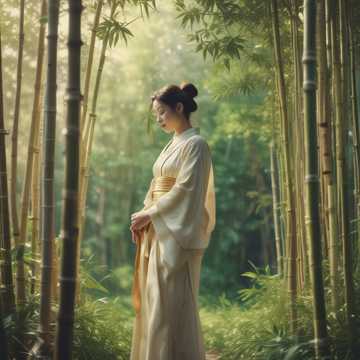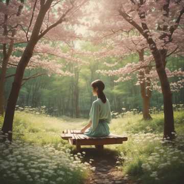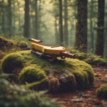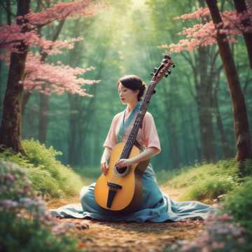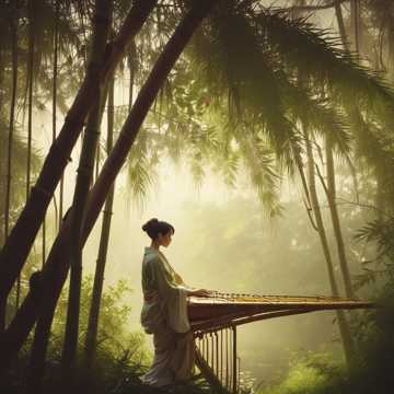 a minimalist but melody rich koto playing by itself in the woods on a sunny day