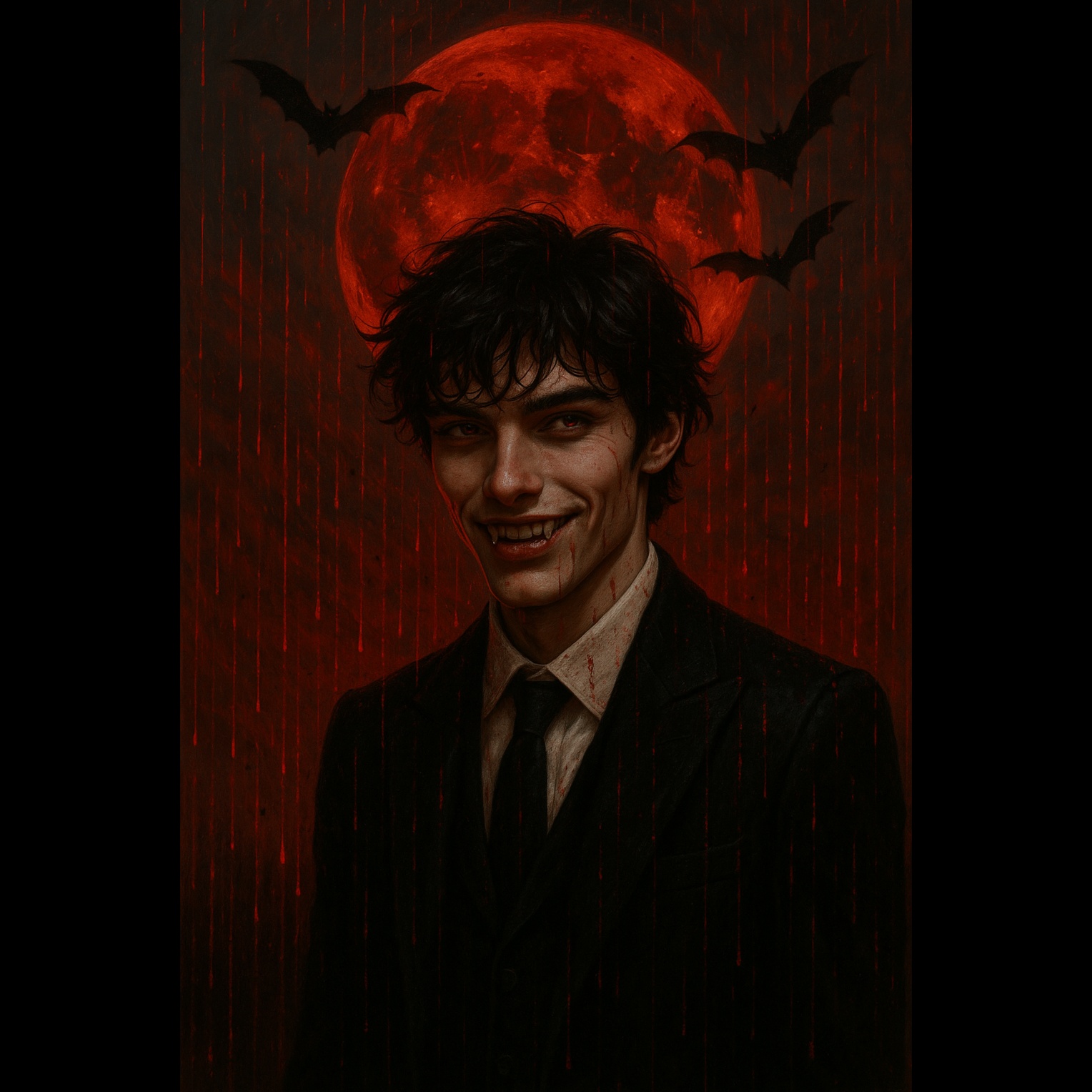 Dark Gothic Psytrance with cinematic tension and industrial textures, Long atmospheric build-up with pulsing sub-bass, eerie synth drones, distorted whispers, and gated reverb FX, Cold, mechanical percussion layered with hypnotic 4-on-the-floor trance beat, Male vocals delivered in French—whispered, chanted, and breathy with vampiric sensuality, Sound design inspired by Pump Panel Reconstruction Mix from Blade, fused with modern psytrance and glitch elements, Use reversed pads, metallic risers, and subtle blood-drip sound FX to heighten the dark rave ritual mood, Final drop should feel like a blood-soaked climax in a vampire nightclub, Tempo: ~130 BPM, ‑female vocals, ‑female voice